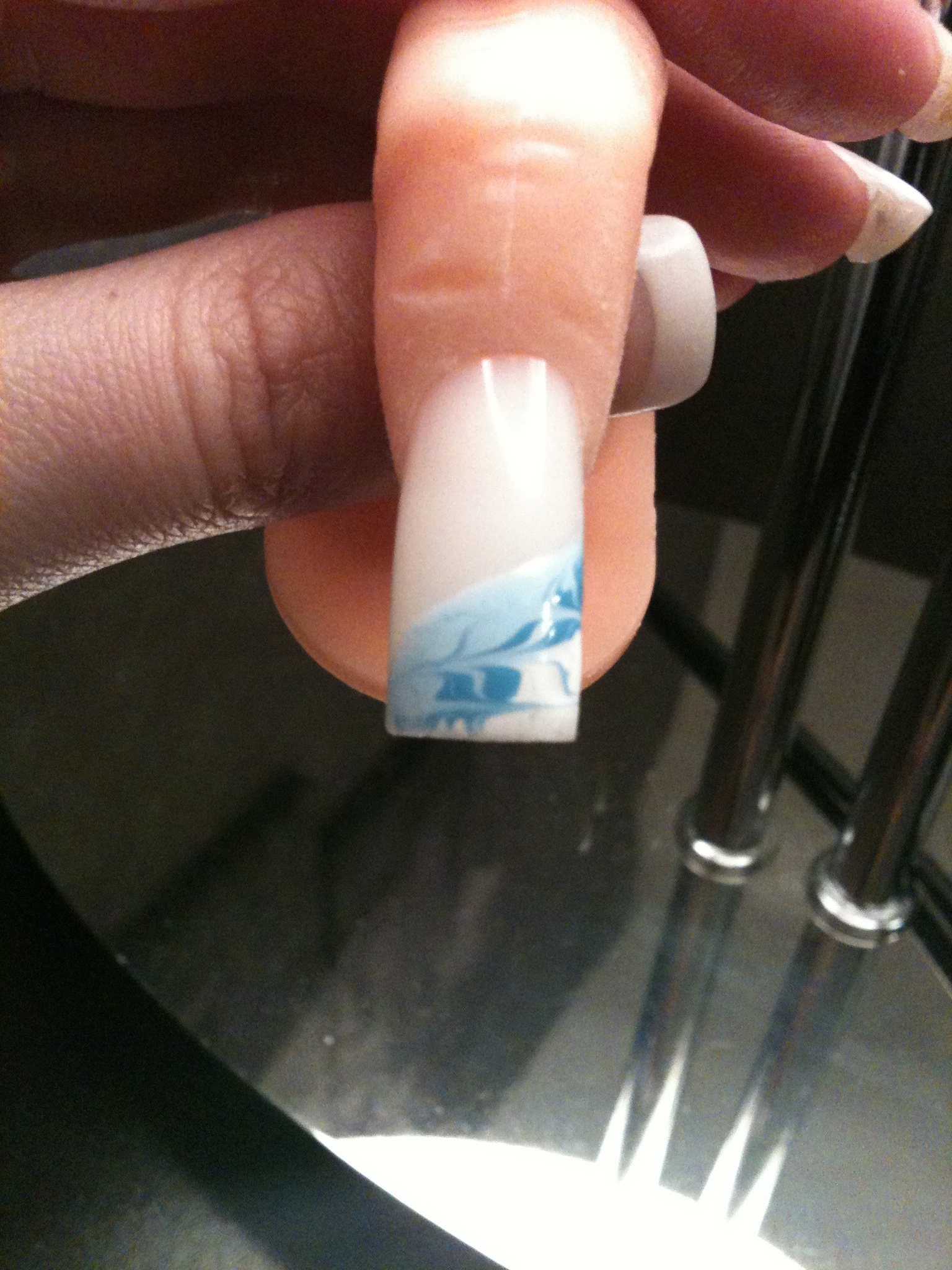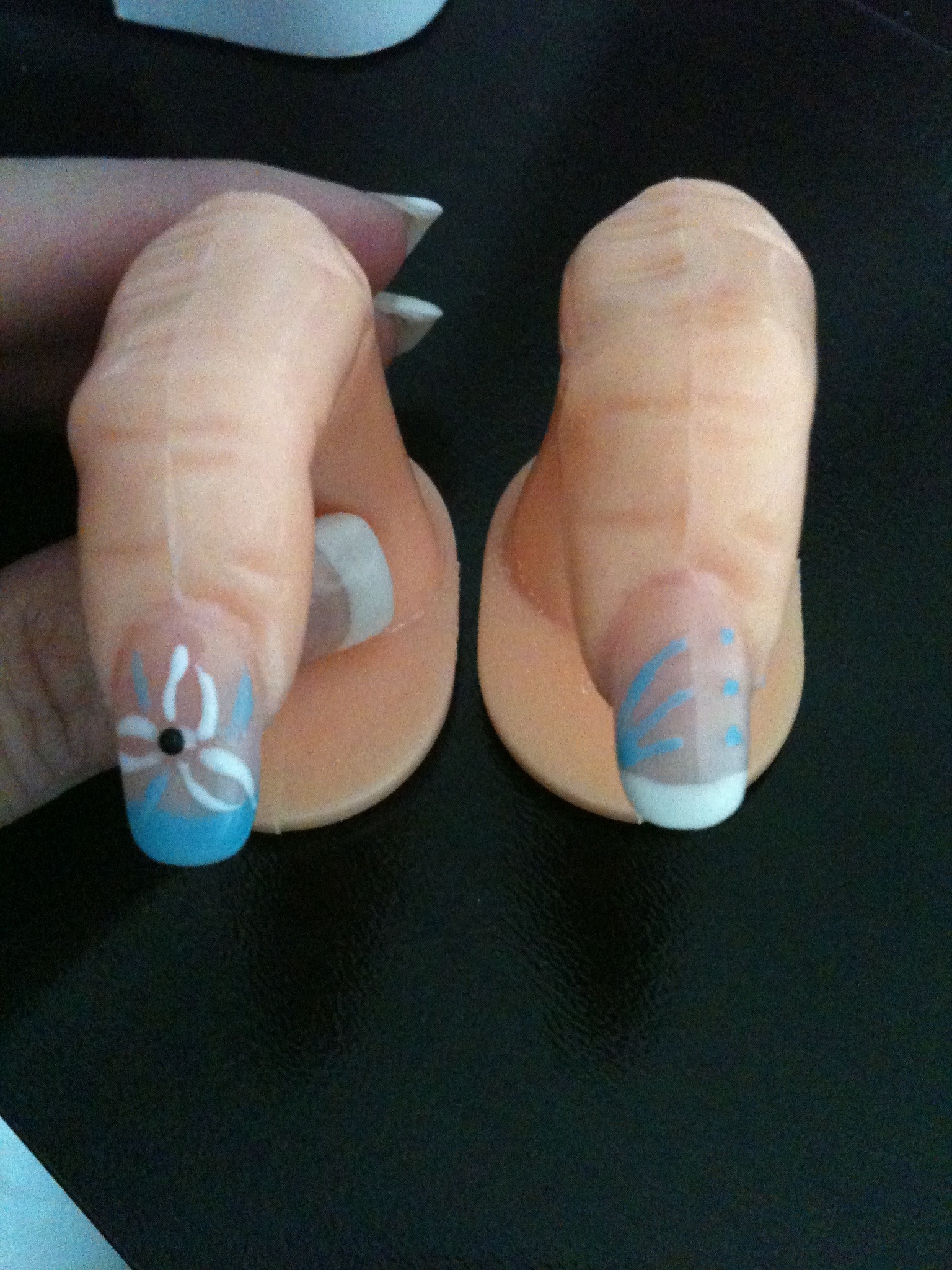 alors // encore à travailler mais mieux que la dernière fois et pas de bomber c'est important car en cas de choc aie aie.les déco impect mais fait des pose simple avec french ensuite attaque les déco deçu sinon tu ne fera jamis de pose qui tiennent.courage tu es sur le bon chemin ;)
