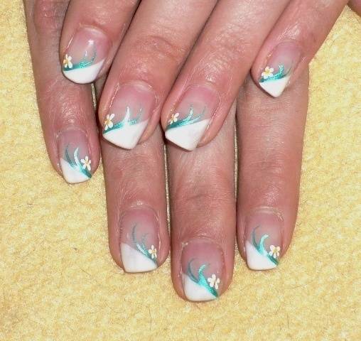 J'utilise un pinceau plat et deux couleurs de peinture que je "fonds" d'abord sur un petit bout de papier et ensuite hop, deux coups de pinceaux sur les ongles!