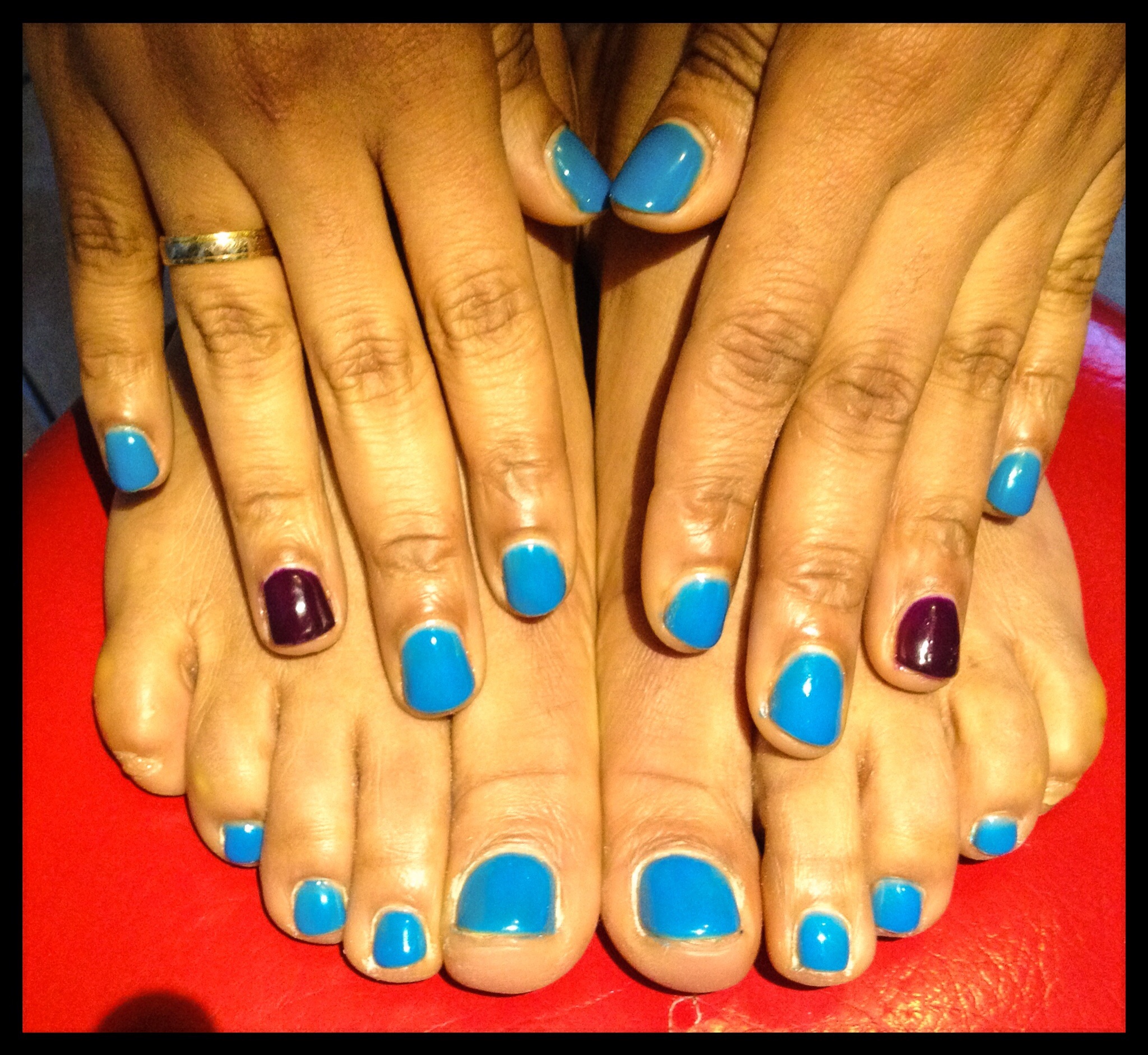 Coucou, alors le prune sur les annulaires c'est le gel "lilas rose" de chez flynails, et le bleu est un vp wonderlack de chez beauty nails, je me souviens plus du nom/numéro je te le noterai demain mais je crois que c'est de la collection printemps. Moi aussi je le trouve joli, il m'a tapé dans l'œil,lol.