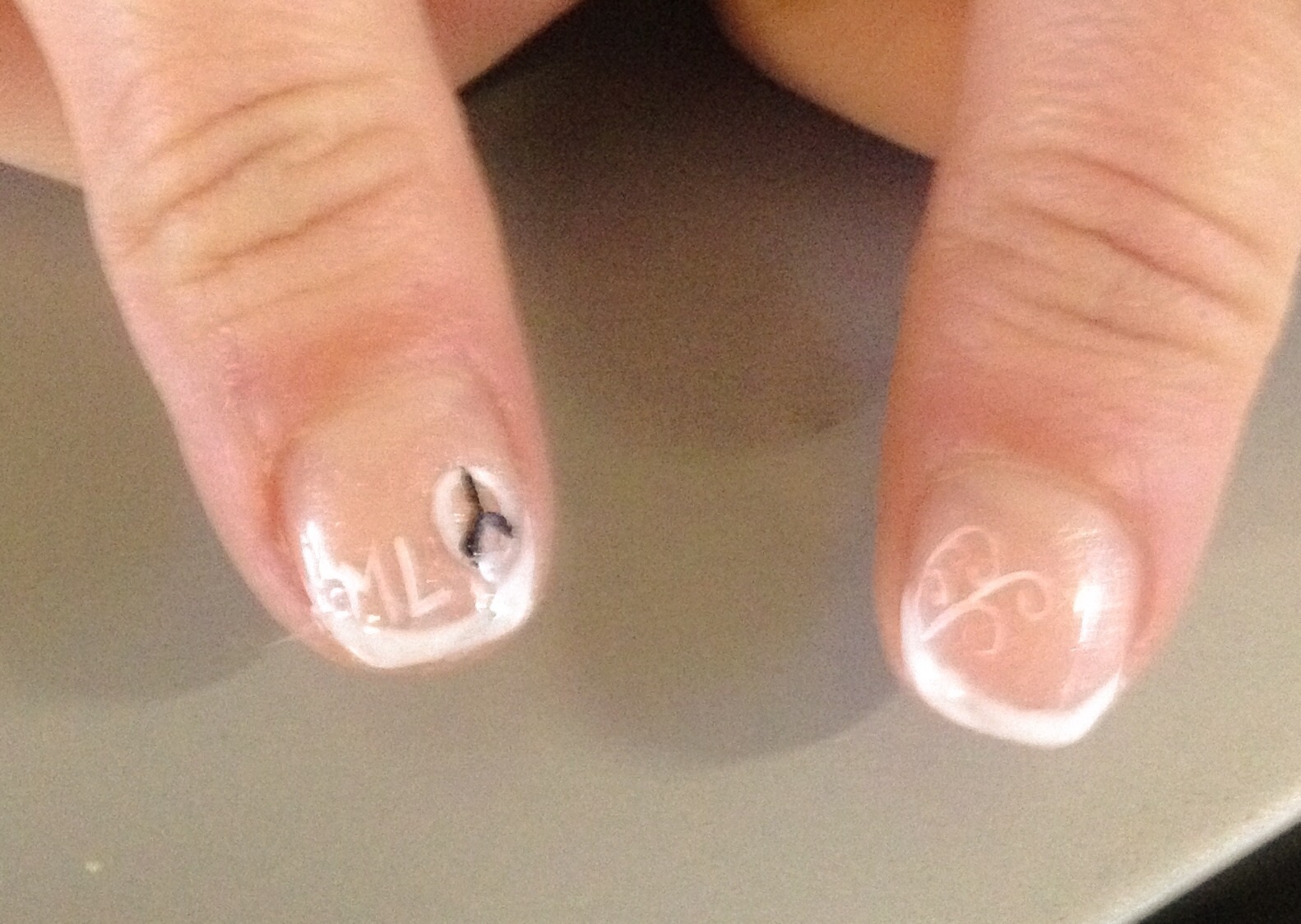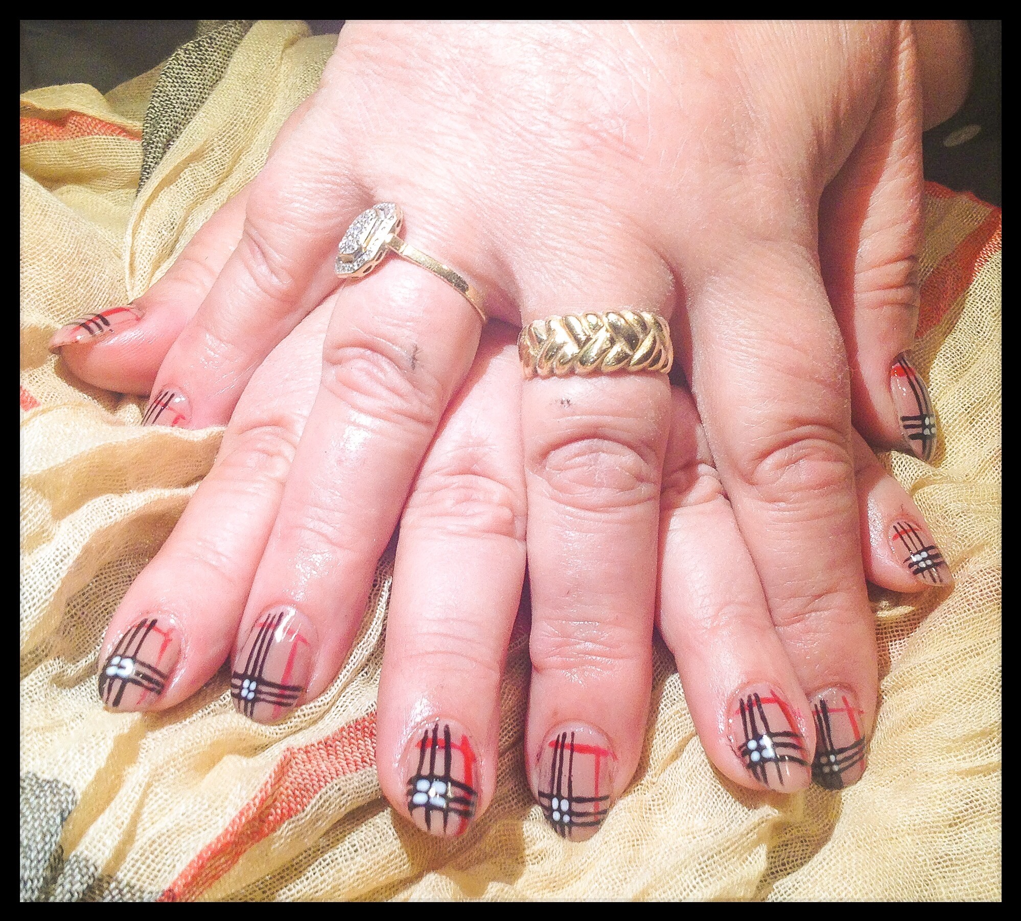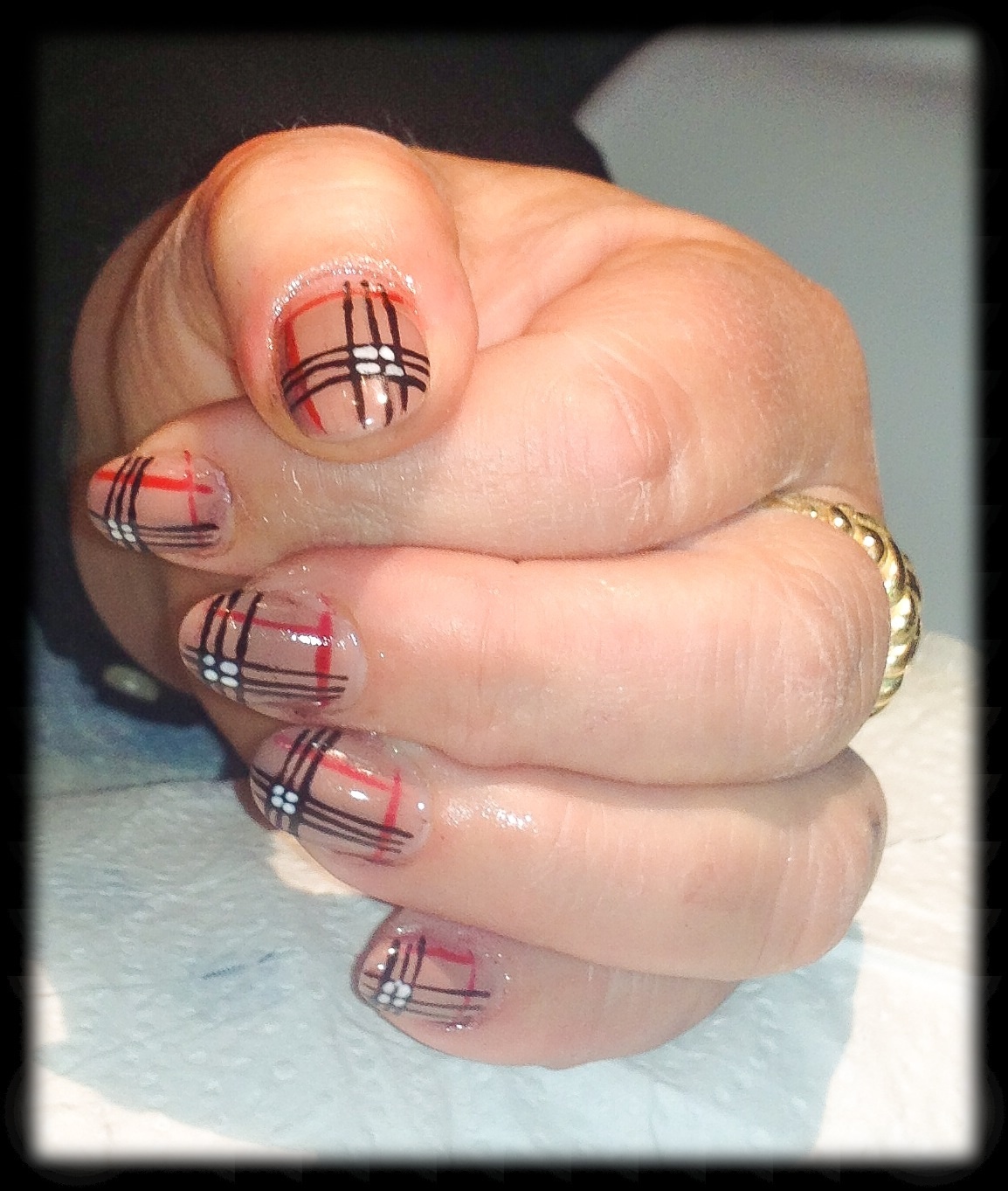 Merci, je l'aime beaucoup aussi. Les traits j'ai fait ça vite fait a la peinture car chéri me pressait... Le nail art c'est mon gros point faible...