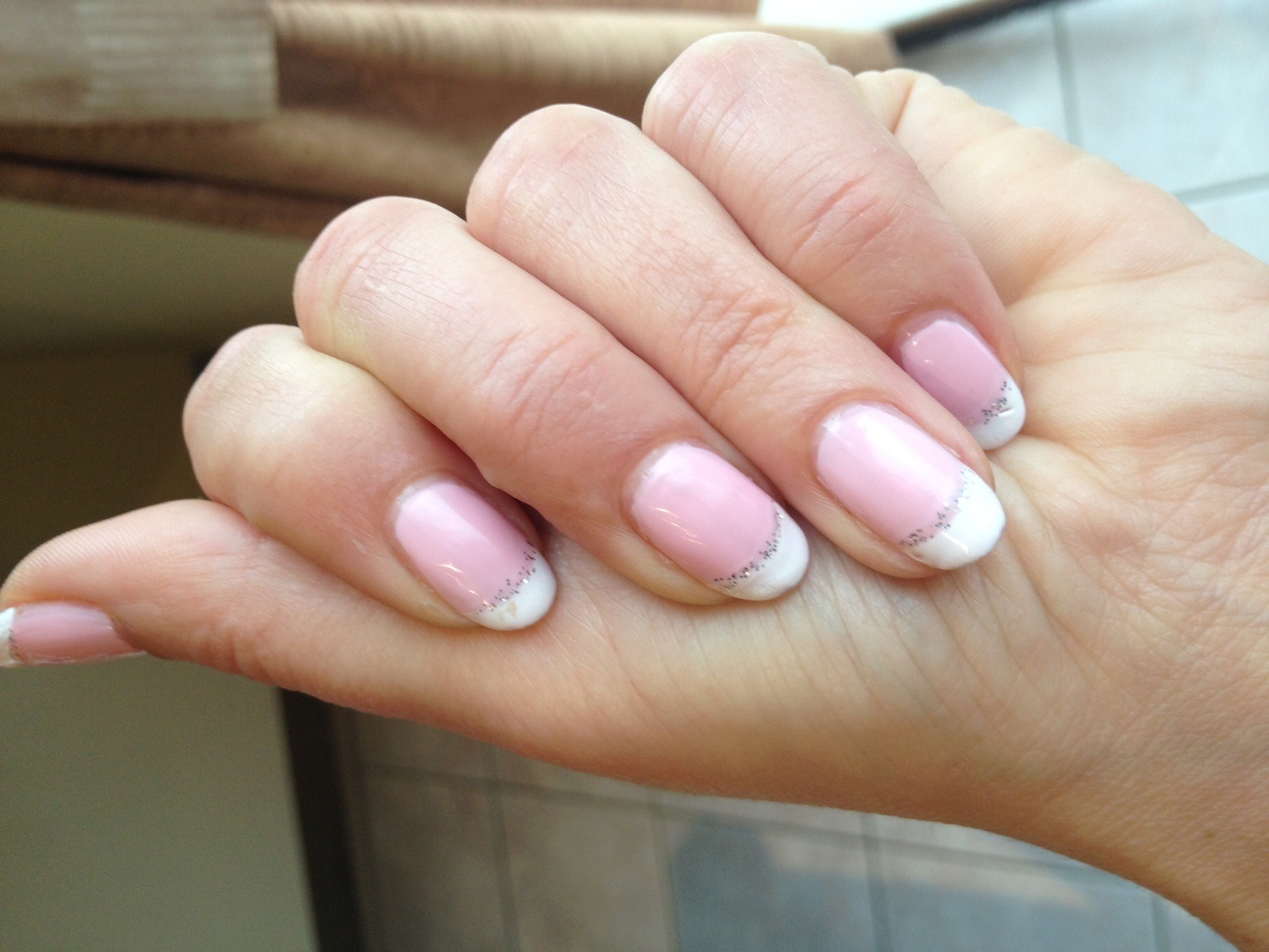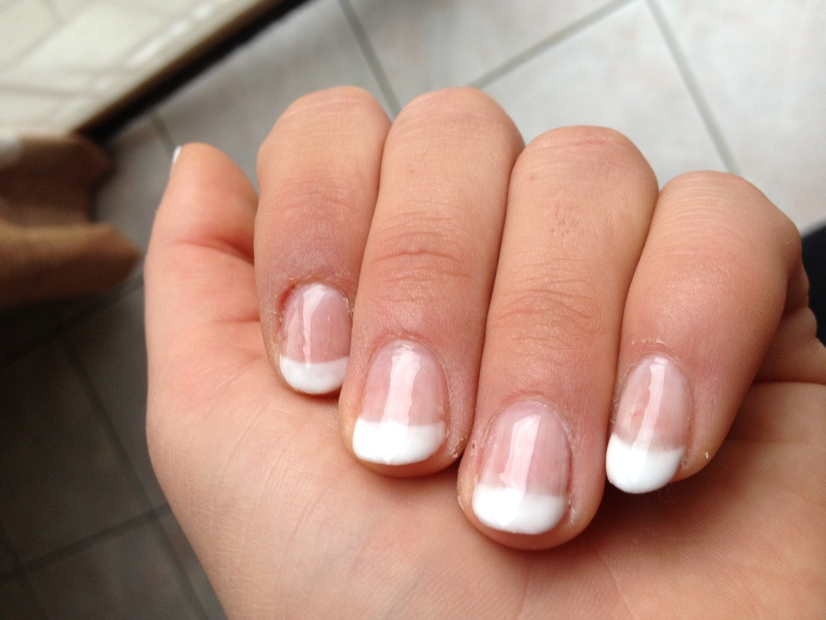 pour moi sur la photo où c'est rose un peu on vit trop la demarcation car elle n'est pas nette. pour la french elle n'est pas nette non plus et d'épaisseur différente sur chaque ongle et quelques "bavures". voilà pour moi