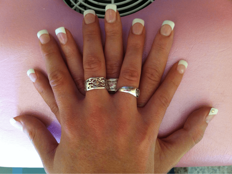 il y a quelques petites // qui ne vont pas, tes frenchs qui sont souvent trop grandes par rapport a la longueur de tes ongles et il me semble que sur une photo on voit le bord libre naturel de l'ongle . mais sinon tes poses sont propres . apres je ne suis pas pro donc je laisse les pro dire si ce que je dit est bon ou pas ou si il y a d'autres choses . bonne continuation !
