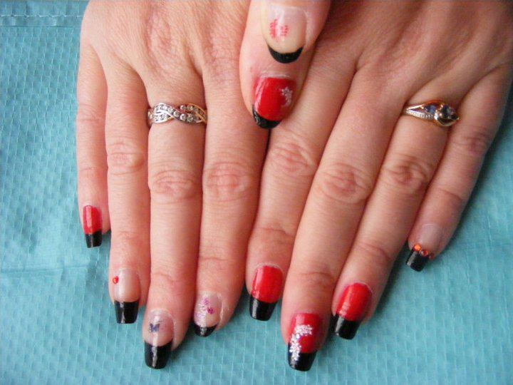 kikoo, j'aime bien les ongles avec le bord french avec petite déco, mais perso les ongles tout rouge, aime pas!!!!