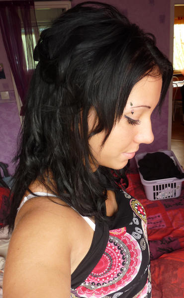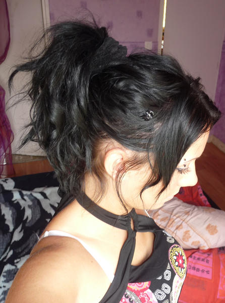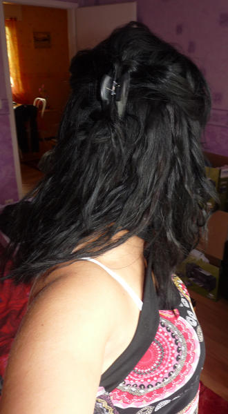 Voila ce que sa donne laché et attaché en queue haute ( bon elles sont courte donc c'est une petite queue quoi lol,je testerais des boucles sur mon kit long