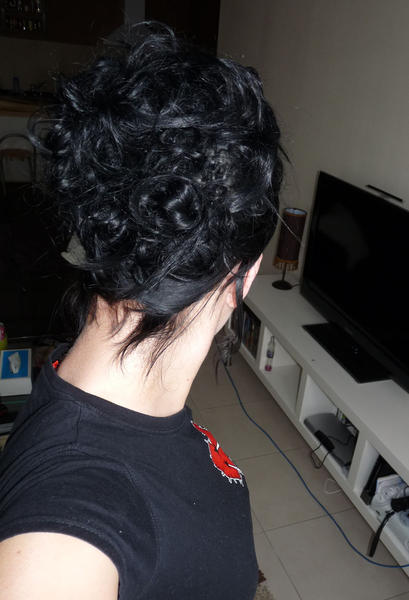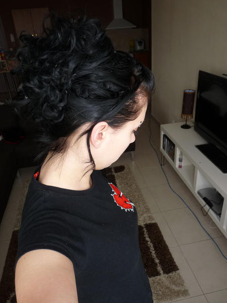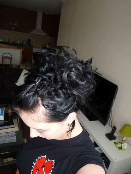 Et ce matin je l'ai ondulé et j'ai fait une p'tite coiffure rapide, pas folichone j'me suis dépêchée, j'ai même pas mis 10 min lol, d'hab mes coiffures prennent 30 min c'est pour dire :) mais ce matin pas le temps :mmm: