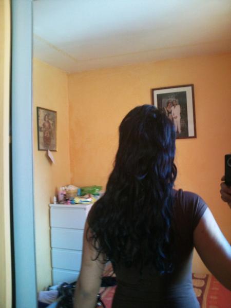 Donc voici mes avant aprés (photos de hier et aujourdui), on ne voit aucun clip, pas de démarcation, sauf que c'est moi qui aime me coiffer comme ca lisse et gonfler sur le dessus quand c'est ondulés , car il sont bien dégrader, meme ultra grave dégrader lol