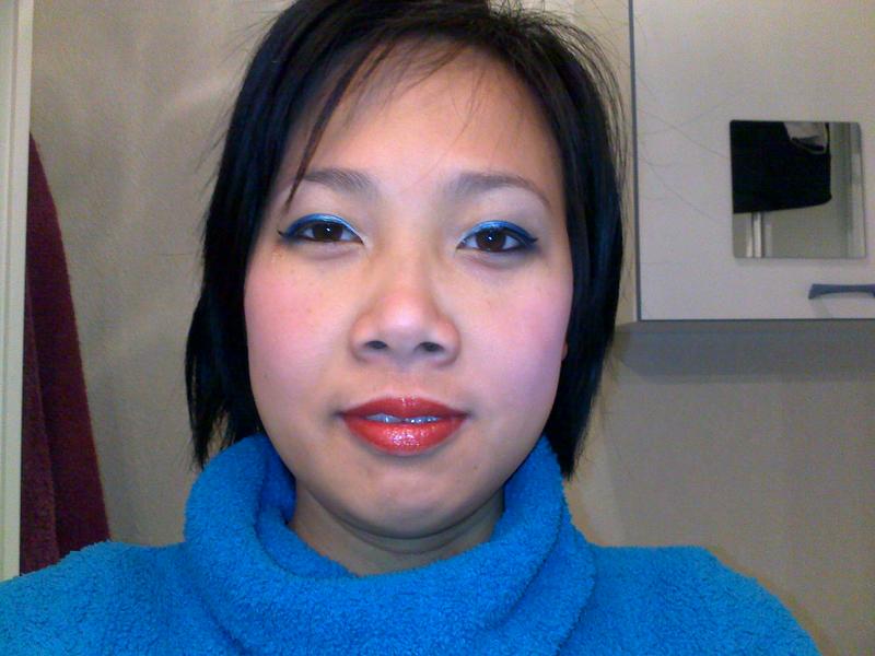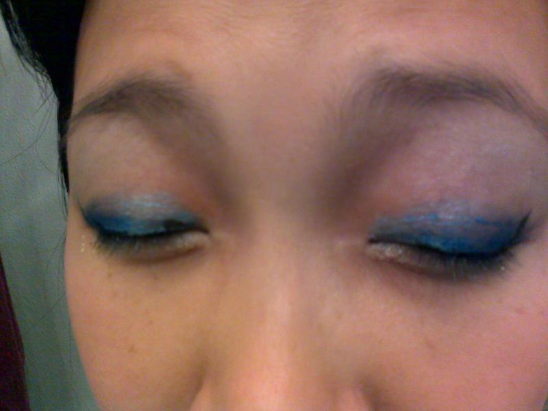 mes yeux sont faire avec les ombres à paupieres creme DUO bleue noir. Elles sont facile à appliquer et a l'air tenir, mais le bleue est un peu léger à mon gout.