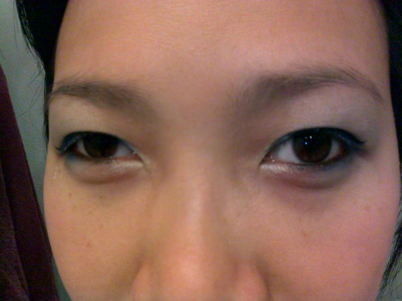 Voilà, c'est du marron en haut et noir en bas, sur la paupiere mobile et à l'extérieur.