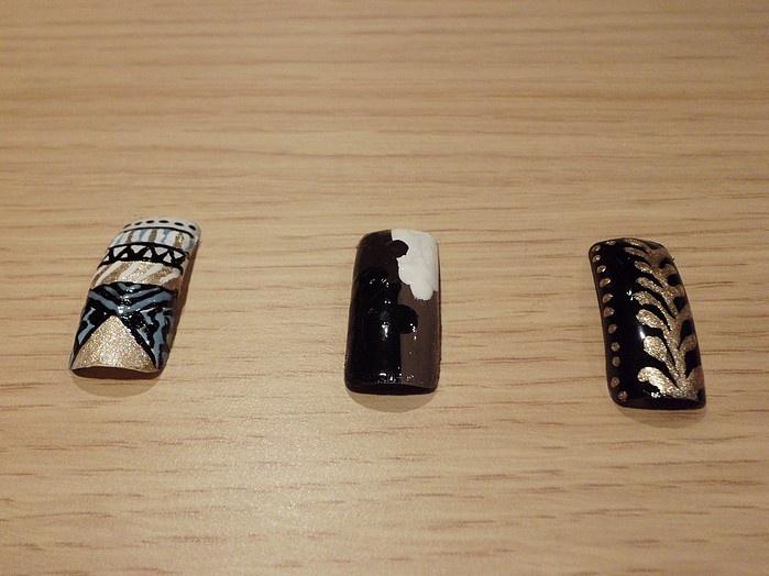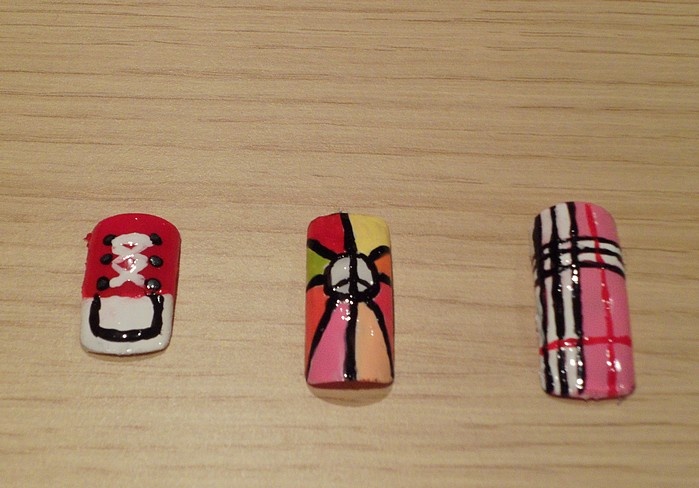 Avec de bons pinceaux ou même des vernis liners le résultat sera meilleur, surtout pour faire des lignes droites et des petits traits précis, ne le prends pas mal, continue d'exercer ta passion, les commentaires doivent être là pour t'encourager