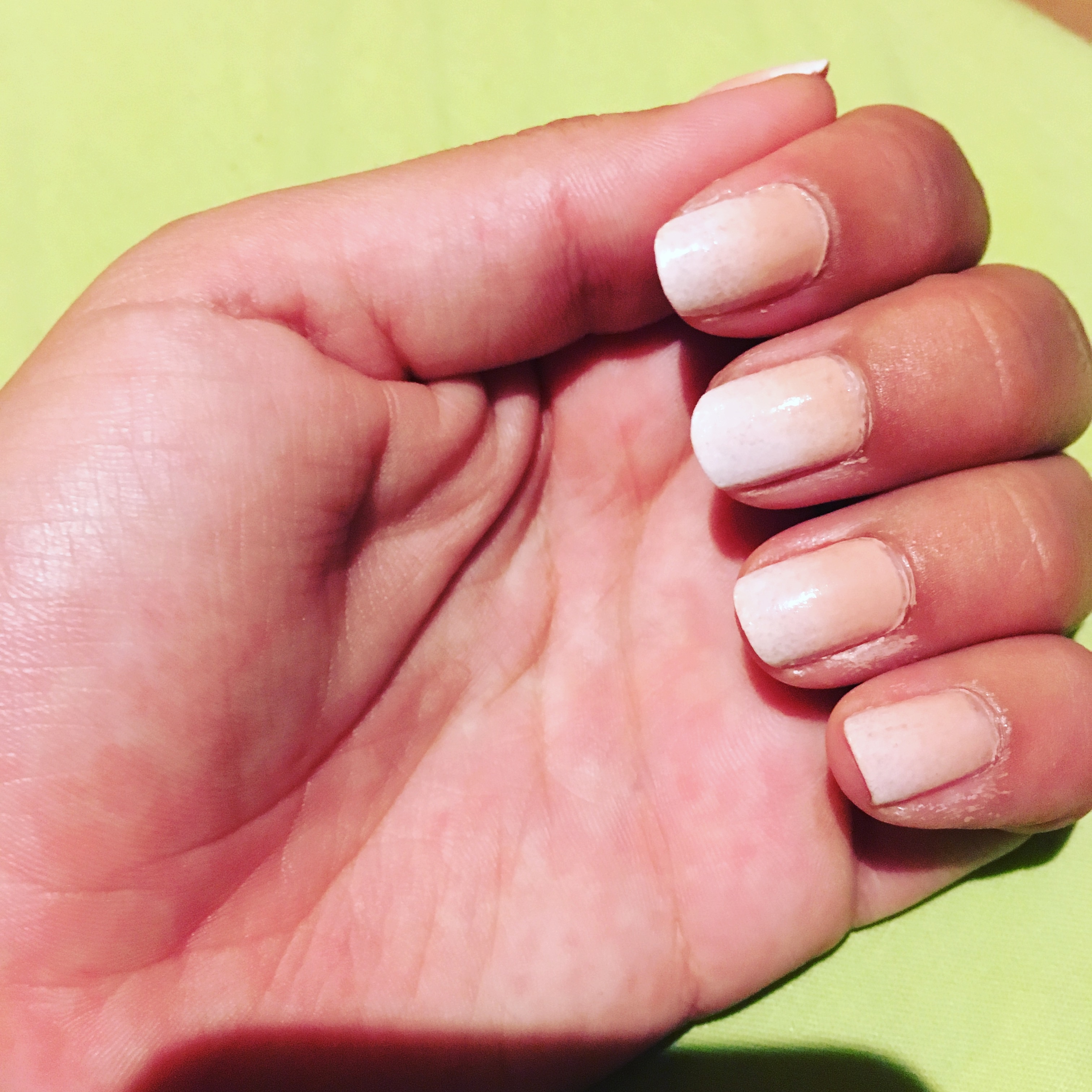 Coucou ! C'est très jolie. Un petit conseil, garde 1mm tout autour, comme ça tu ne toucheras pas les cuticules et tu verras que ce sera beaucoup plus propre et joli ;)