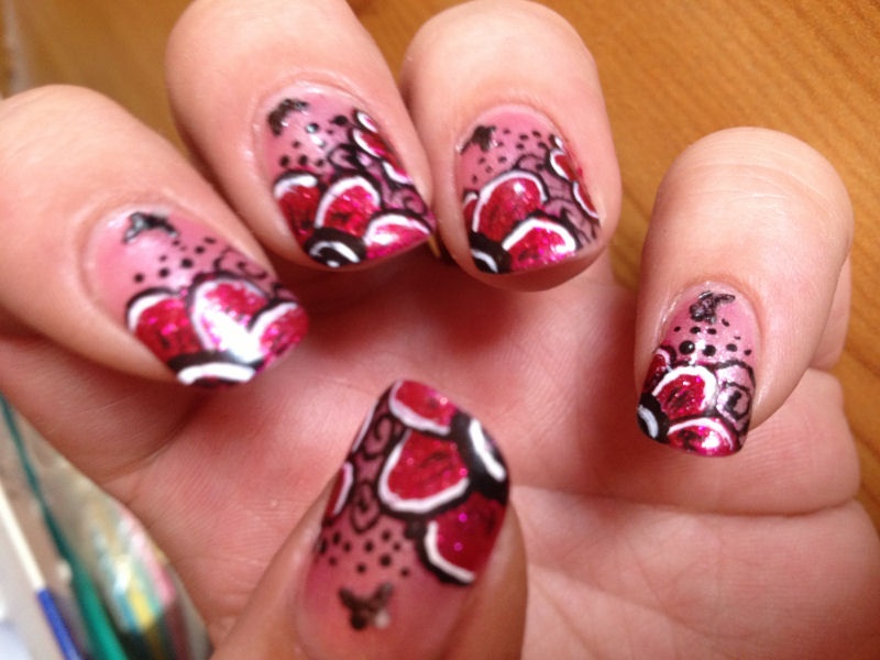 8- alors trop contente de ce nail art, je l'ai gardé plus d'une semaine (j'ai aussi suivi un pas à pas trouvé sur le net)