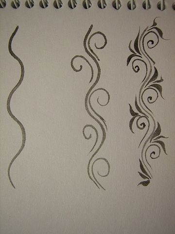 Entraîne toi sur une feuille pour faire des arabesques, des traits, points...