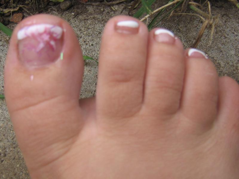 alors, je trouve ta french irregulière, la forme de tes ongles n'est pas la même partout, pour ta pose pied, la french pas regulière, mais pas mal!!