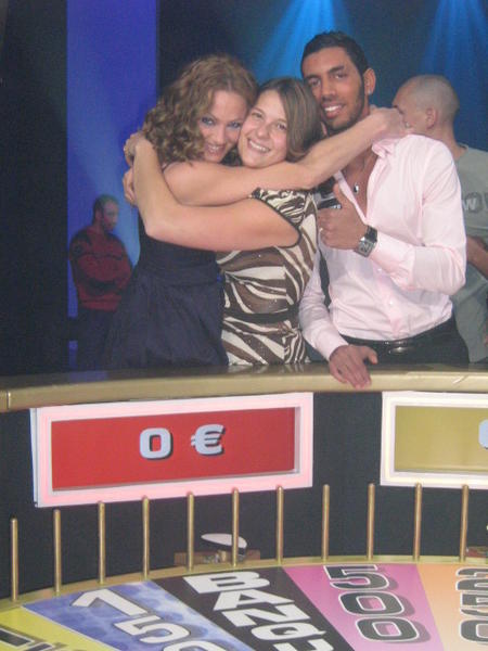Coucou les filles voici quelques photos de mon passage à la roue je vous avais dit que c'était pour le 31 mais en fait c'est pour le 01/01/09 à 19h puis c'est un peu l'arnaque car nous étions obligés de faire les imbéciles au quel cas l'émission ne serait pas transmise d'ou pas de gain p^fff tout est truqué car pour 40 min de jeu on en tourne 1h30 moi j'ai du faire la cruche vous étonnez pas c'est normal de plus g dansé avec Victoria c'était rigolo elle, elle est fabuleusement belle et gentille lui (christophe) est très froid mais bon il était très tard et il devait etre fatigué.