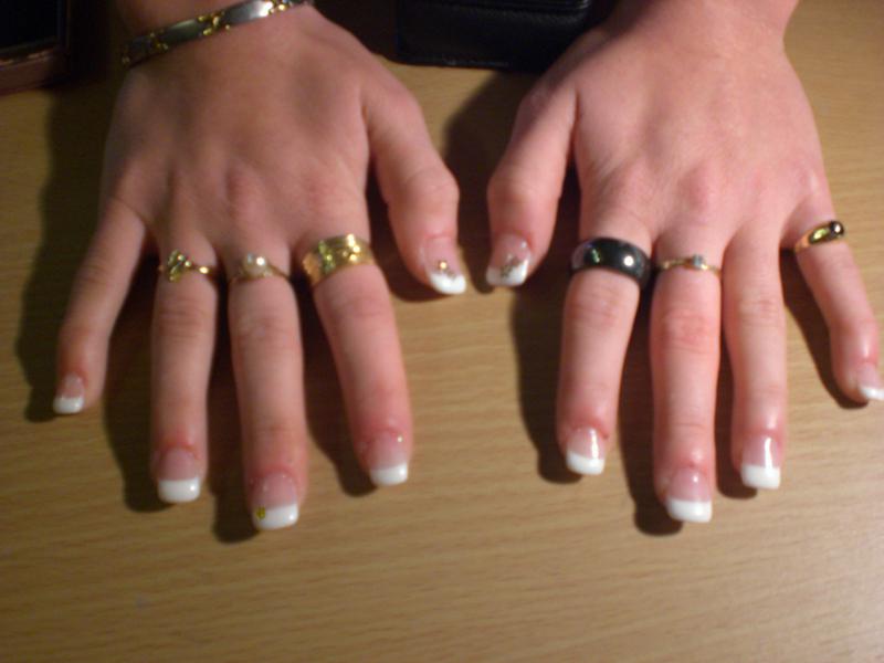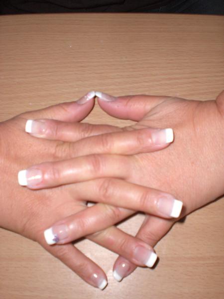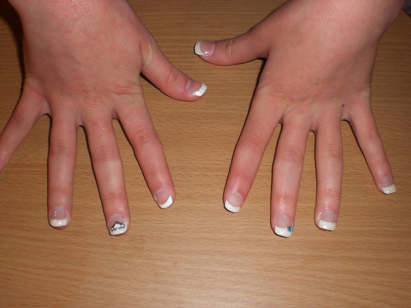 tes frenchs ne sont pas trés sures et un peu épaisses. tu t'en es trés bien sortie pour le chablon et tes // sont bien. bonne continuation