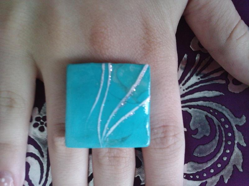 Voila ! J'ai fait mes toutes premières bagues en Fimo. Je vais essayer en gel quand j'aurais reçu ma commande. Je suis assez contente de moi, même si je vois maintenant sur la photo que la bague carrée n'est pas tout a fait doite.