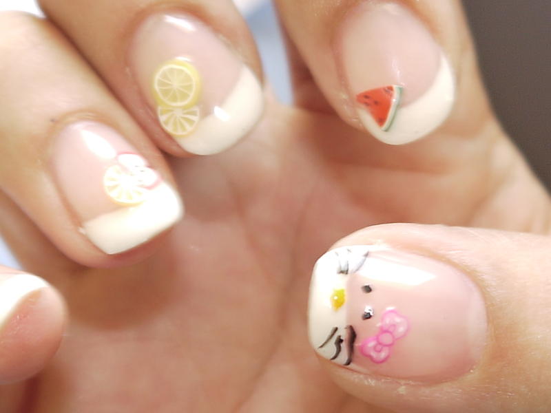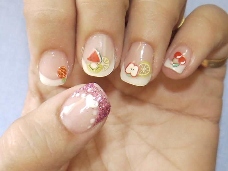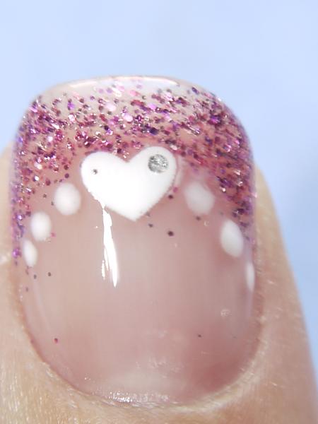 1/ J'ai mélangé des paillettes avec du gel de construction et j'ai dessiné la french.