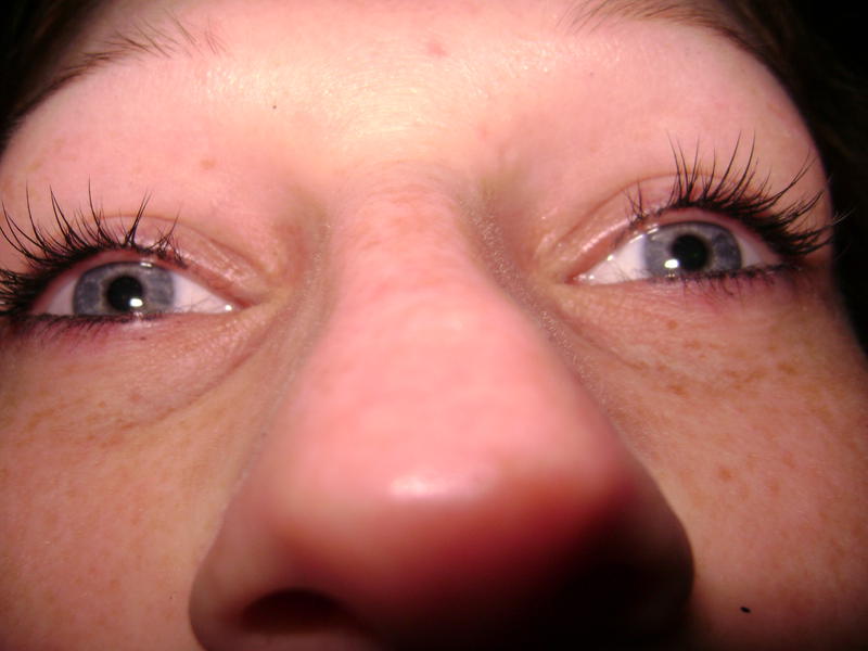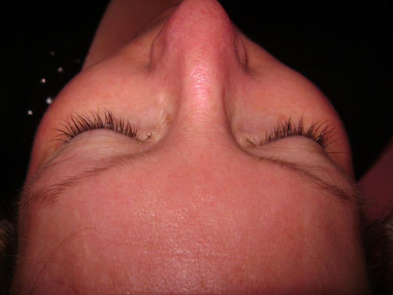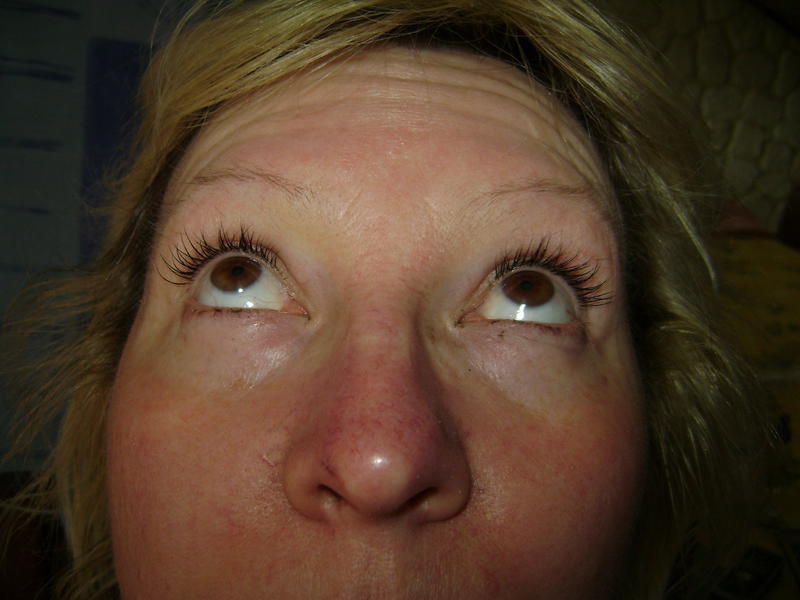 Pour la première pose, je trouve qu'il y a des cils collés entre eux...Tu le vois surtout par le dessus...Donc brosse bien tes cils pendant la pose pour les placer et voir si éventuellement il y en a qui se sont collés ensemble puis surtout lisse bien ton cil si excédent de colle et prend le temps de faire pouette-pouette ...aprés , avec les colles plus rapide, on ne le fait plus mais là il le faut pour éviter de tout coller !!!! lol