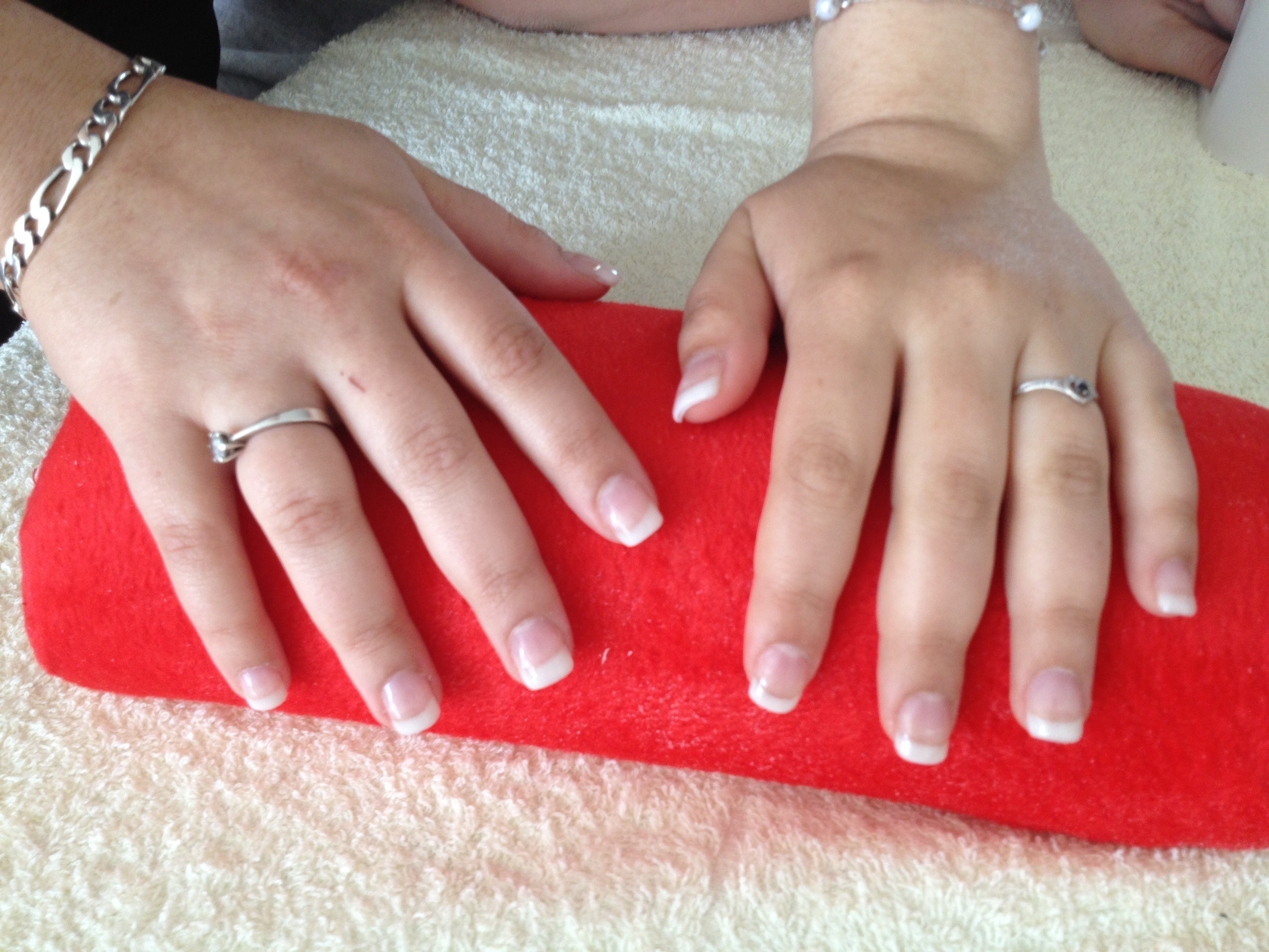 coucou alors je te dirais // à revoir et le bomber, sur la 2 la taille de tes ongles ne sont pas identique, sur la 3 french trop épaisse respect les proportions, continue c'est le début ce n'est pas facile ;)