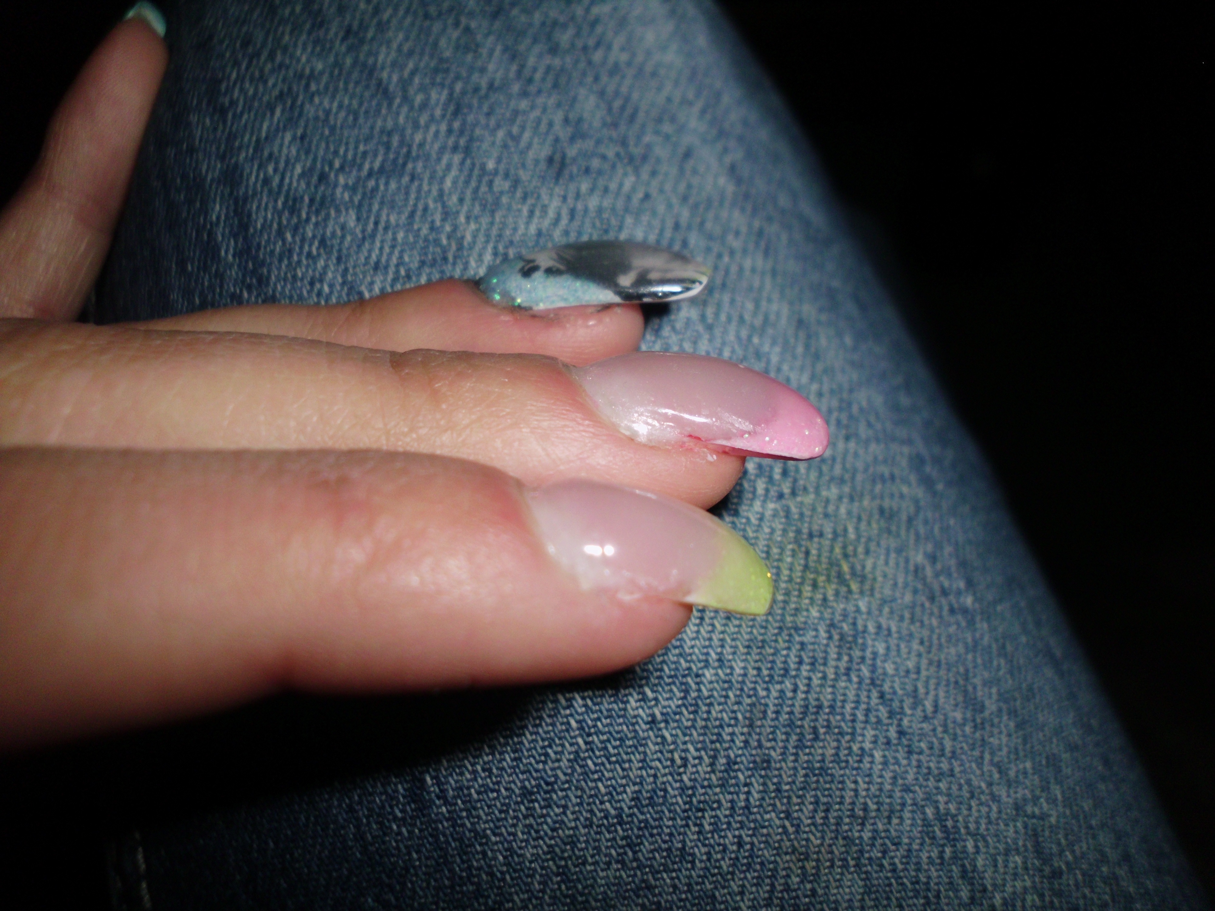 Voilà c'est quoi qui cloche alors :D je trouve qu'ils font "bloque" et c'est vraiment pas jolie, je vais suivre ton conseil et limé prèt des cuti, ça me fait tjs peur de limer tout près, comme on peut voir sur mes première photo, je n'y allé pas de main morte près des cuti et vive les bobos :(