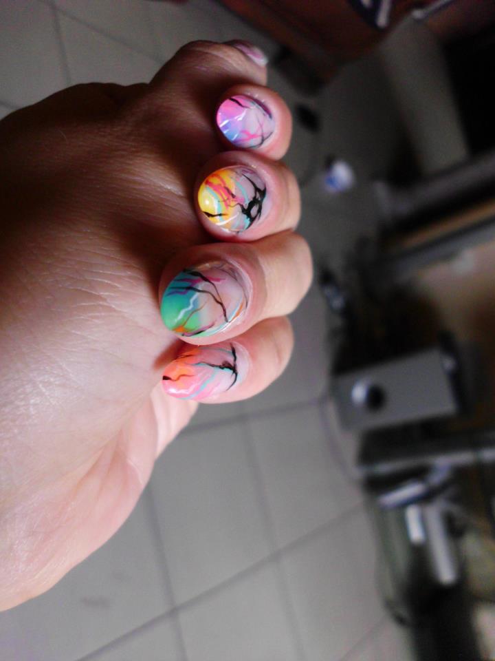 Sur ma belle soeur, qui ronge ses ongles, j'ai enfin tester le chablon sur elle il y a 3semaines aujourd'hui, aucun décollement, je suis super contente :D