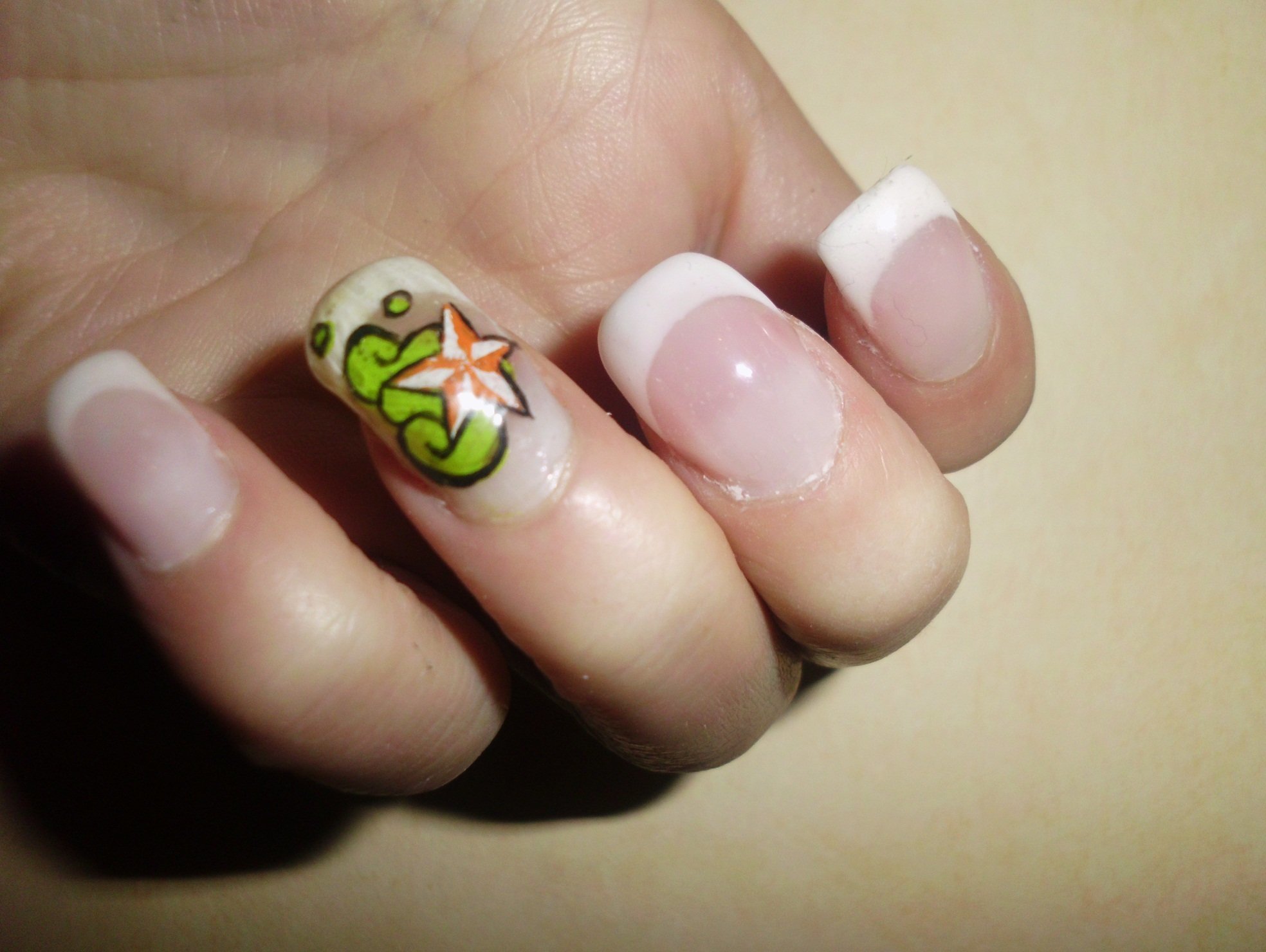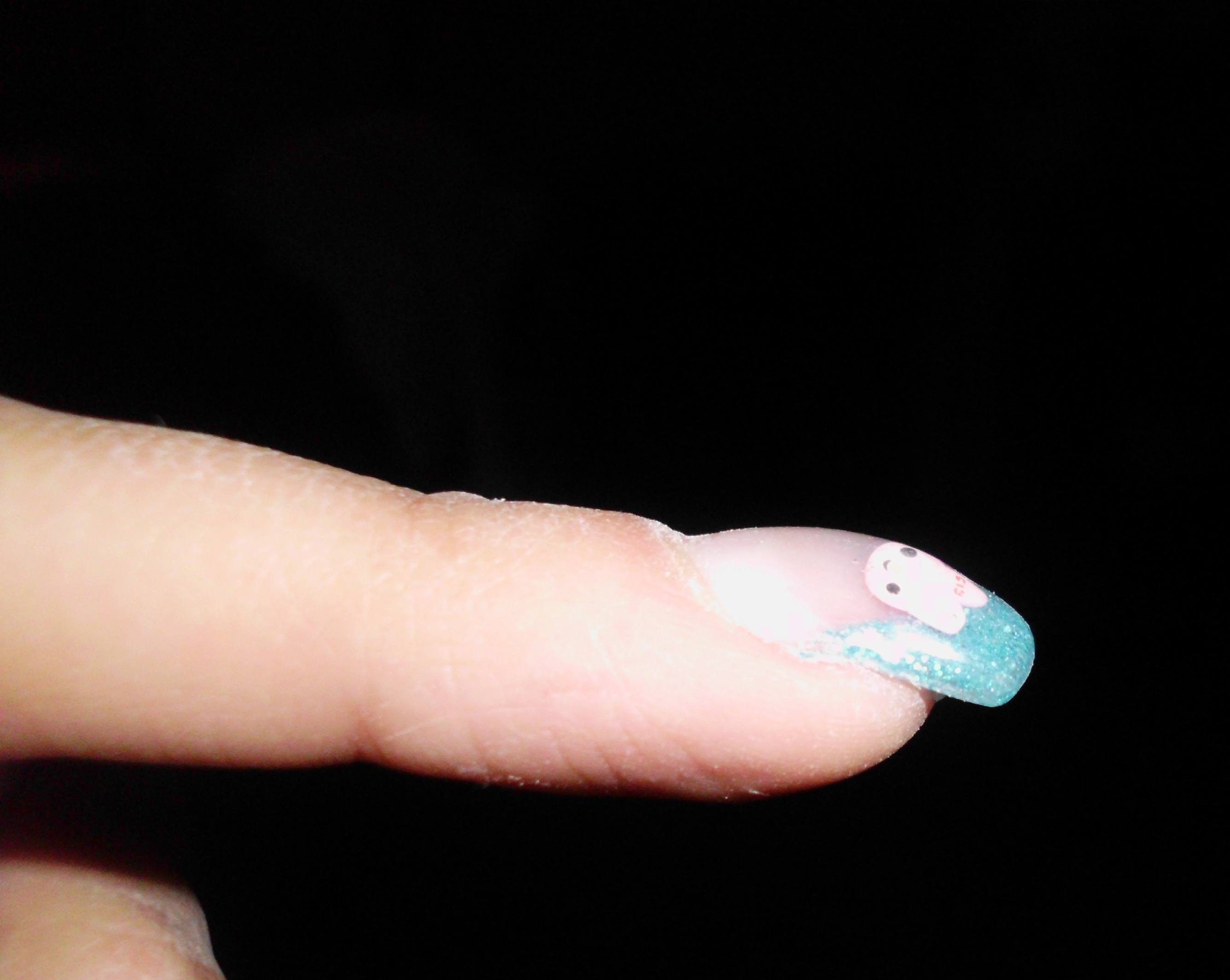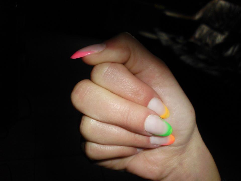 (pose sur ma belle soeur, qui ronge ses ongles, ses ongles pique vers le haut d'habitude, ici j'ai testé le chablon sur elle pour modifier l'inclinaison, ça va faire 2 semaines qu'elle les a, et il n'y a aucun décollement ^^)
