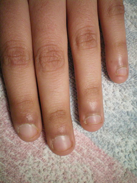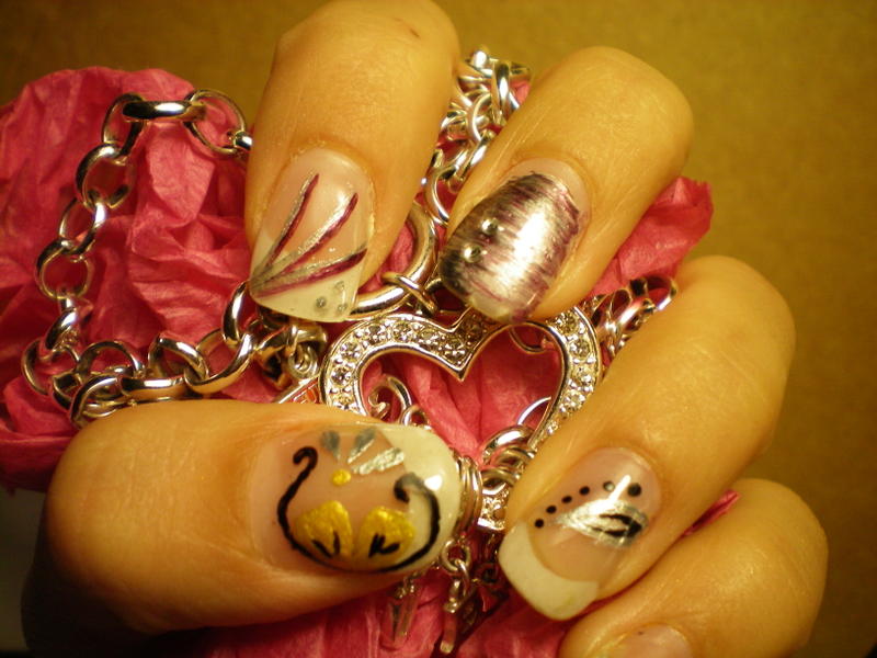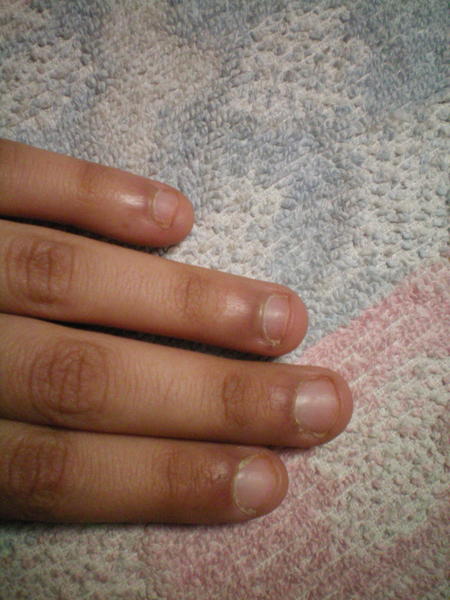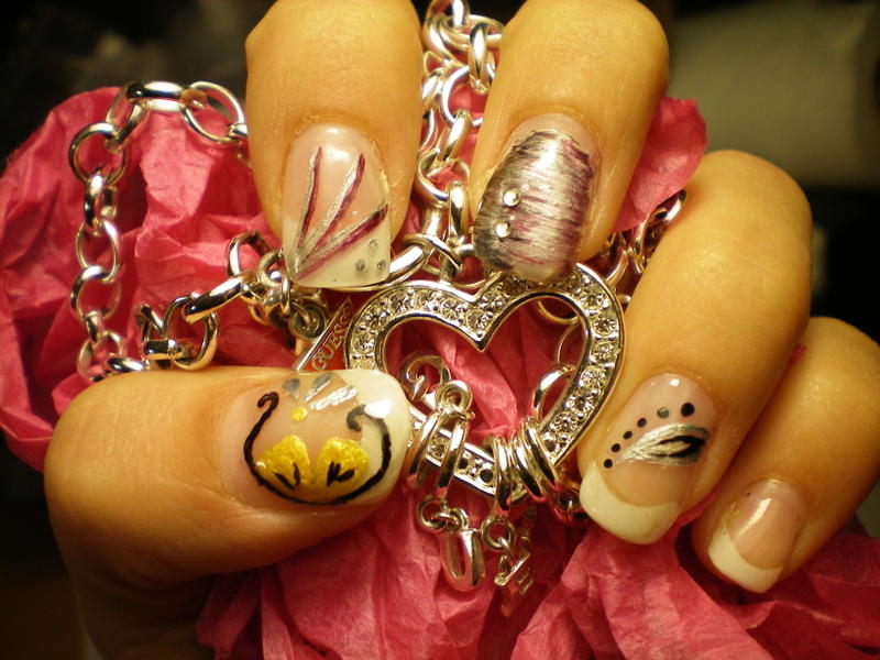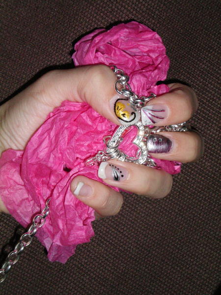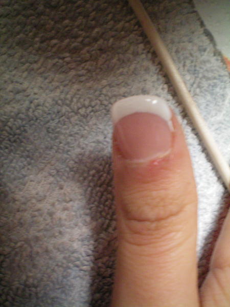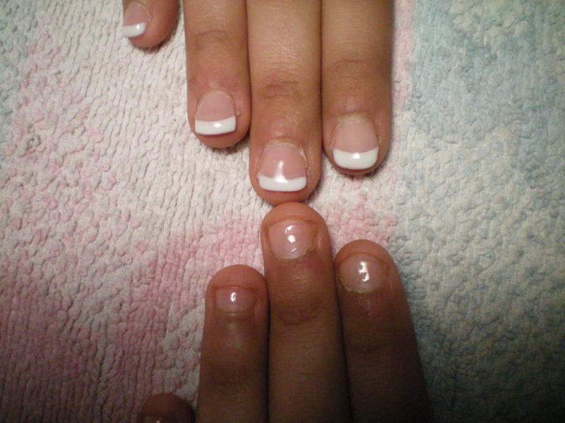 Alors je vais mettre deux poses : ma toute première pose que j'ai fait sur ma soeur qui ... attention... avait les ongles rongés!!! donc je vous raconte pas!!