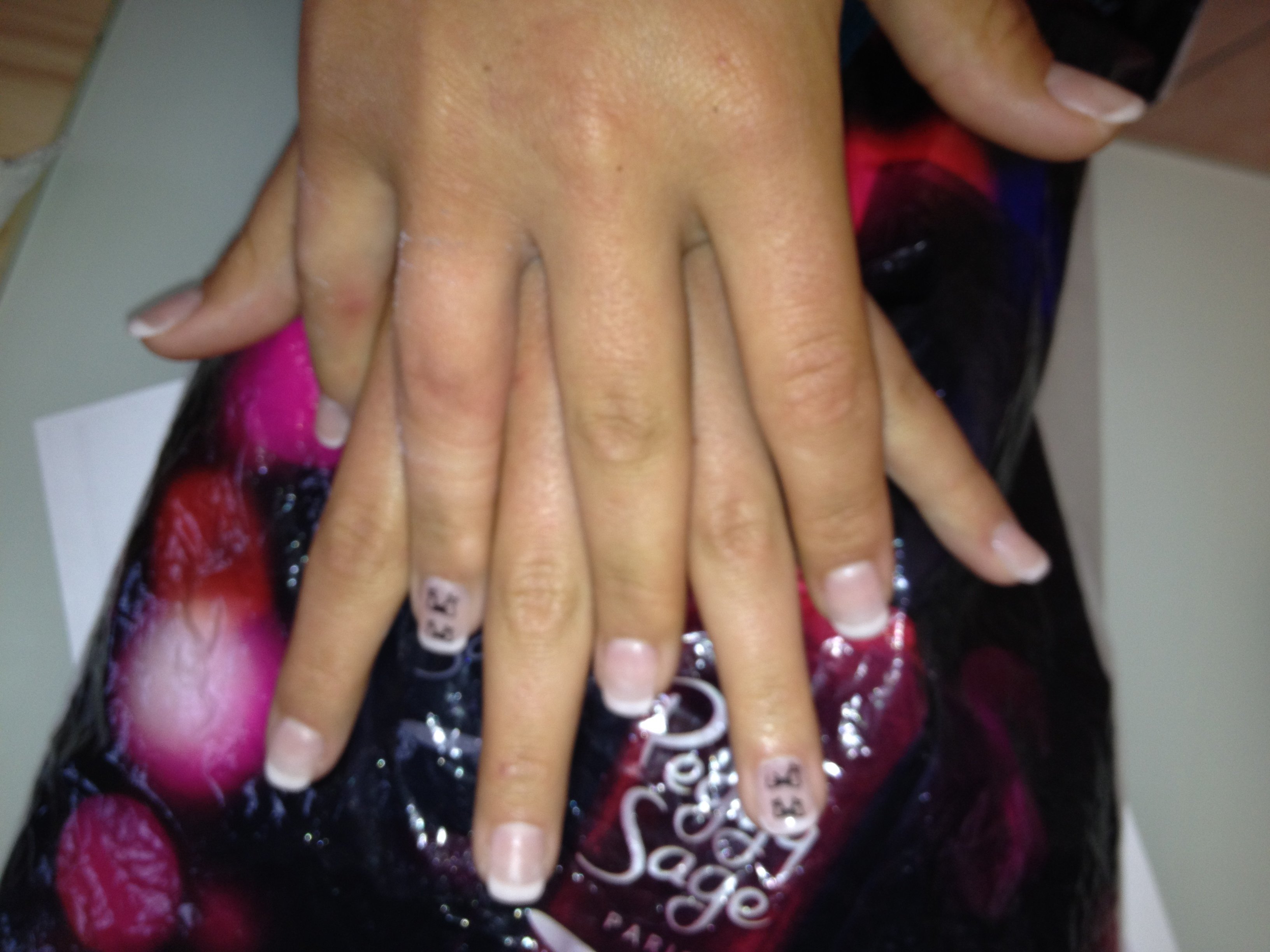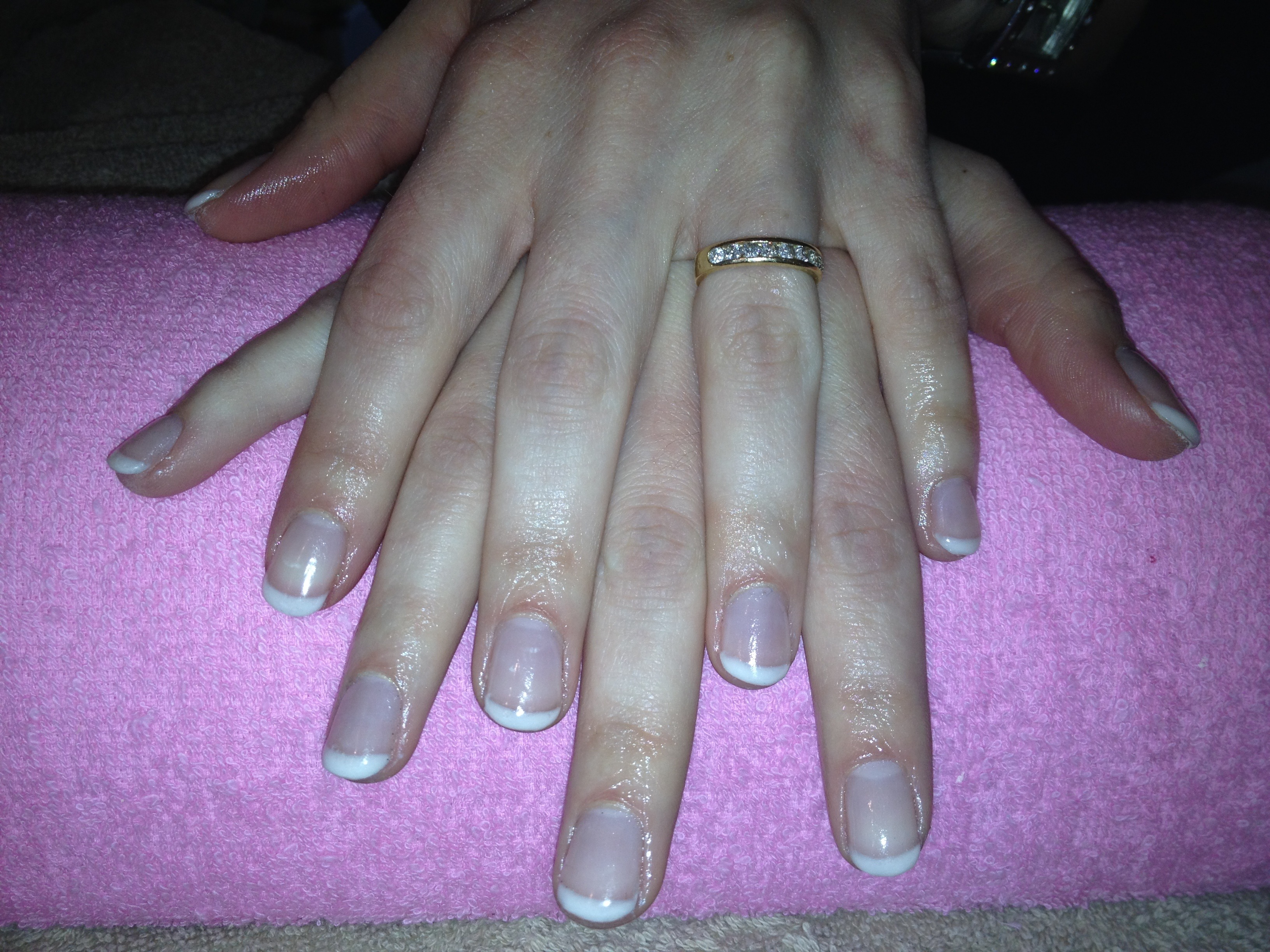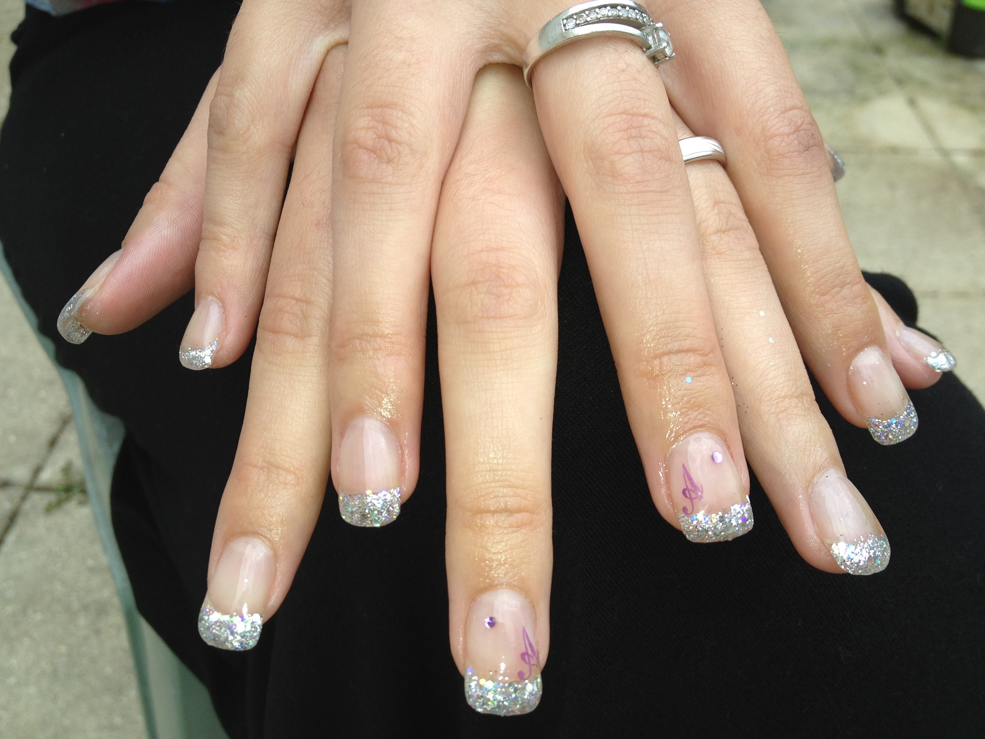 attention aux papattes sur la french pailletée, manque peut étre un peu de bombé , et rectifie les bords avant de catalyser ton vernis permanent, mais c joli !