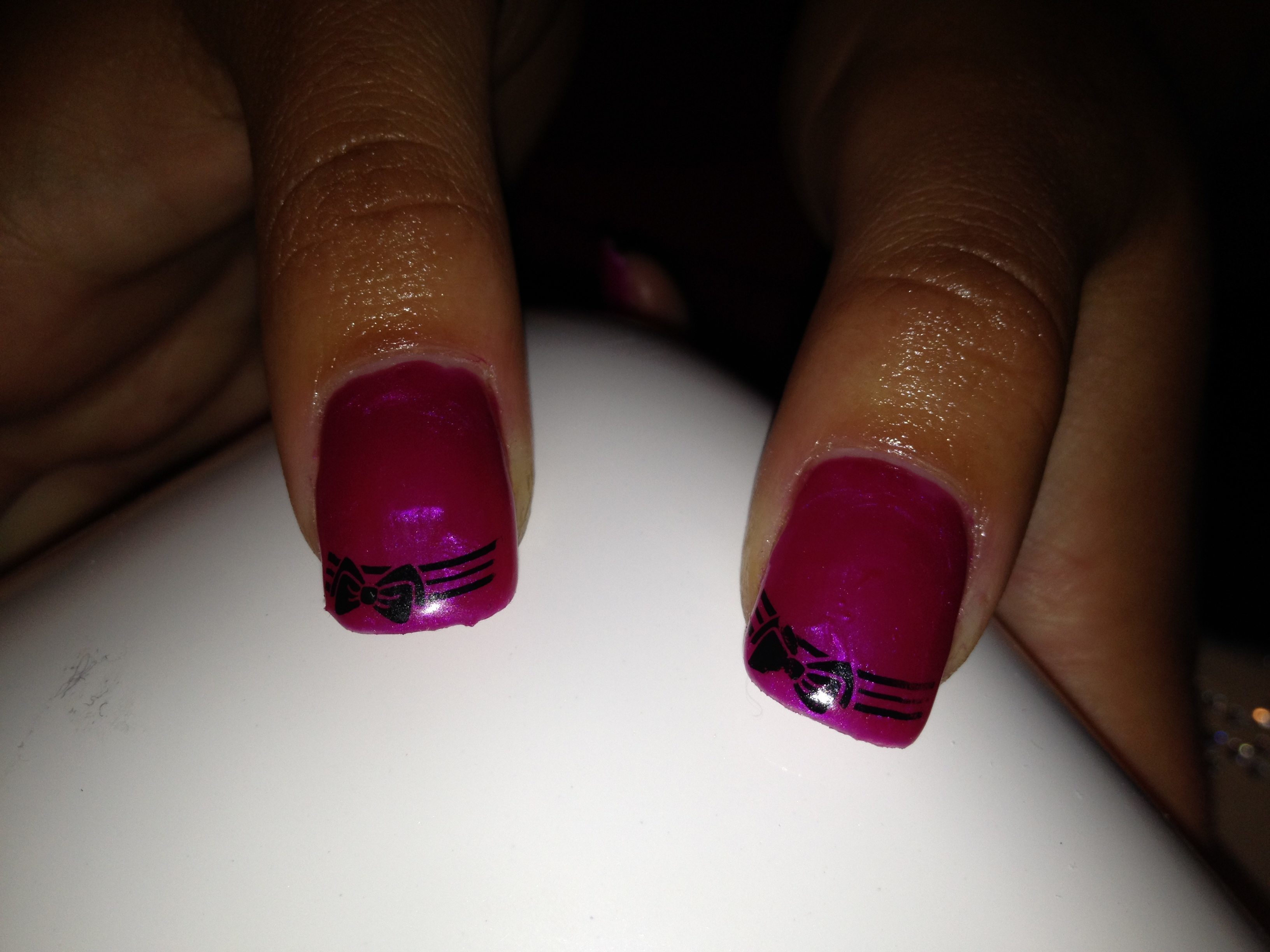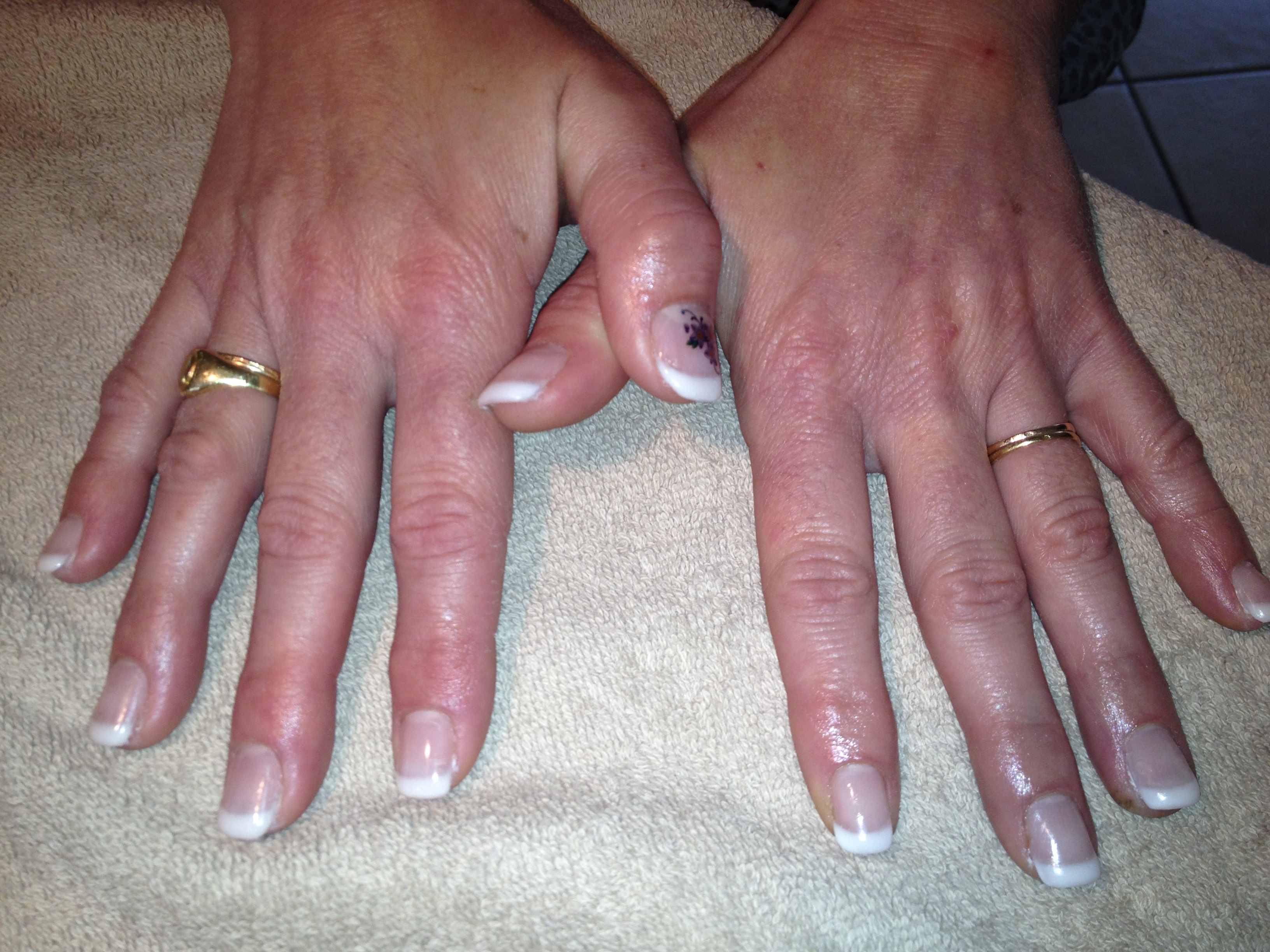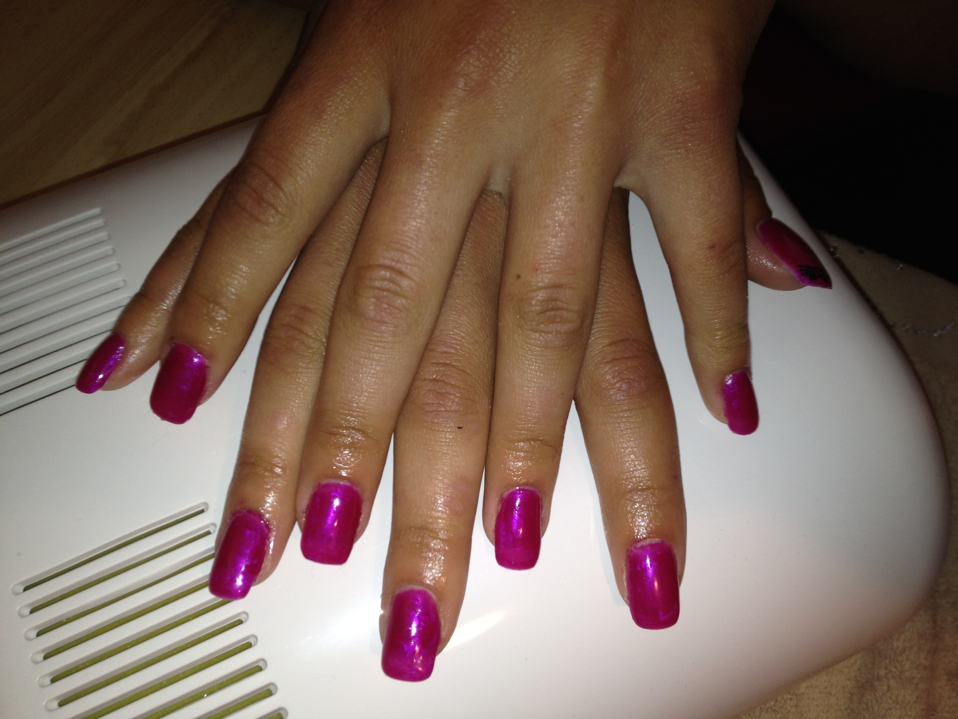attention aux papattes sur la french pailletée, manque peut étre un peu de bombé , et rectifie les bords avant de catalyser ton vernis permanent, mais c joli !
