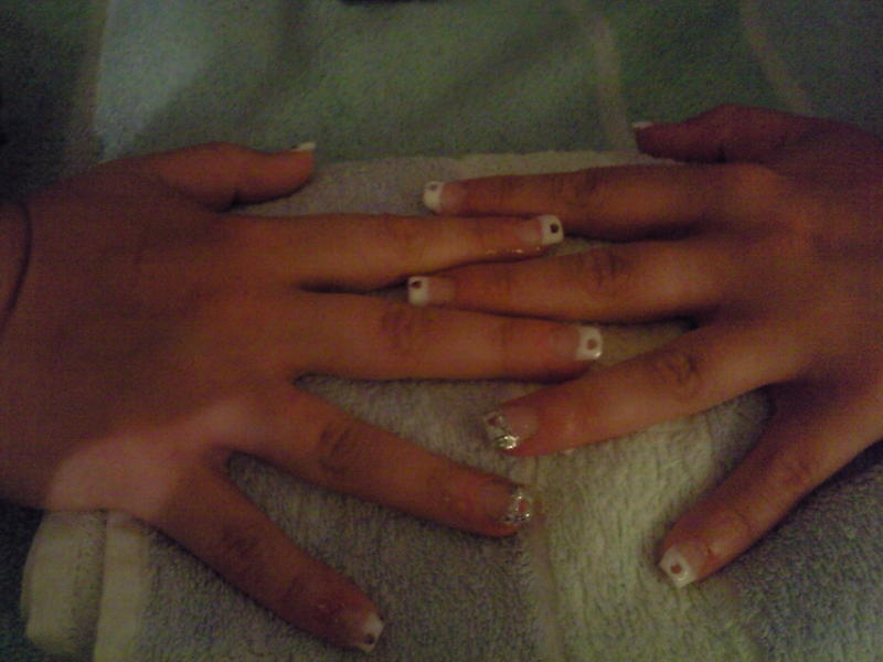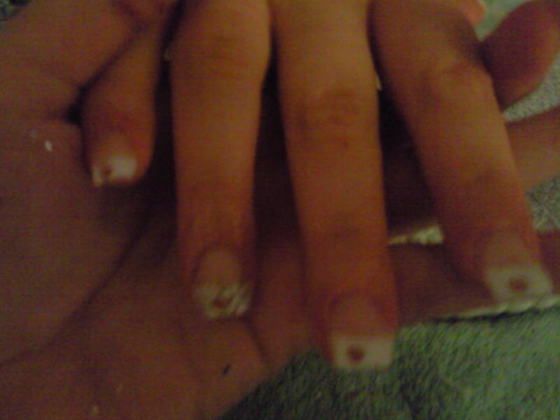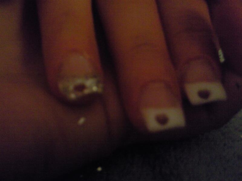 Alors ca y est j'ai enfin fait mes premiéres poses 3 au total: sur moi juste un gainage photos n°1 n°2 avant, photos n°3 n°4 n°5 n°6 aprés, 2nde pose tips blanc photo n°7 n°8 désolé il n'y a pas de photo avant j'avais n'oublié, 3ème pose tips naturel avec petit coeur plus 1 french sur un doigt en paillette argent avant photo n°12 et aprés photo n°9 n°10 n°11. J'ai tenté quelques petites déco enfin sur moi cela m'a permis de cachet ma fench forme dentelle ^^!!! Bon aller à vos avis positif et surtout négatif afin que je puisse m'améliorer !!! Merci bientôt!!!