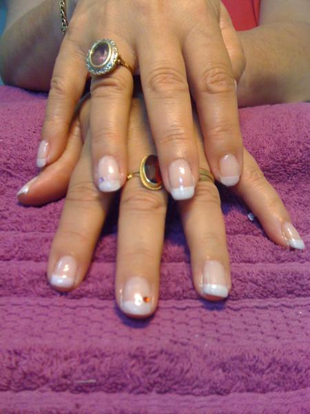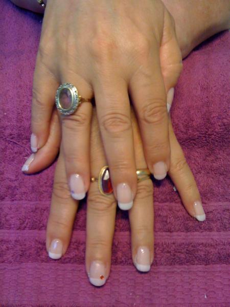 alors la 1ère ca rebique un peu sur certains doigts, t'es dans les cutis, french trop droite et trop large (ca c'est une question de gout mais esthétiquement à l'oeil french plus fine aurait été plus jolie), manque de matière sauf si c'est un gainage (mais comme on sait pas pose caps ou chablon ou gainage je m'avance pas)