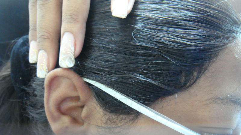 Ensuite j'ai passé l'alcool, le scalp protector et la colle.