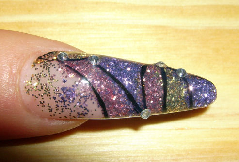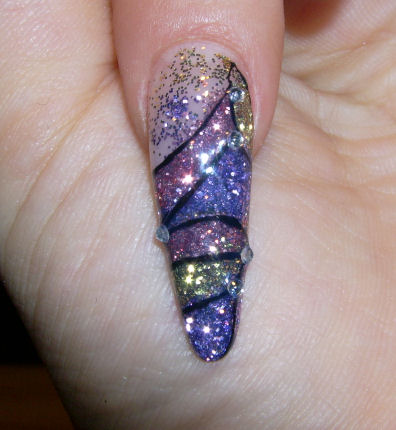 Et comme mes paillettes etaient de sorties, j' ai fait un stilet paillettes et liners et strass, mais sans degradés.