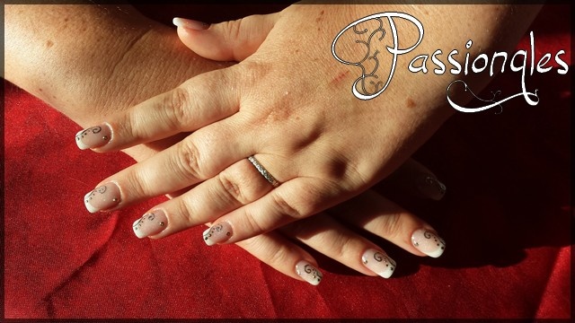 Gainage tout en résine Magnétic, deco gel paint noir avec foil or et argent .... ca va faire plus de 2 semaines que j'ai cette pose .. mais je n'aime toujours pas le blanc ... j'ai fait cette pose au cas ou je sois convoquée pour un entretien ... mais bon comme y a pas de boulot sur Cherbourg c'est descidé ... la semaine prochaine je mets des couleurs sur mes ongles
