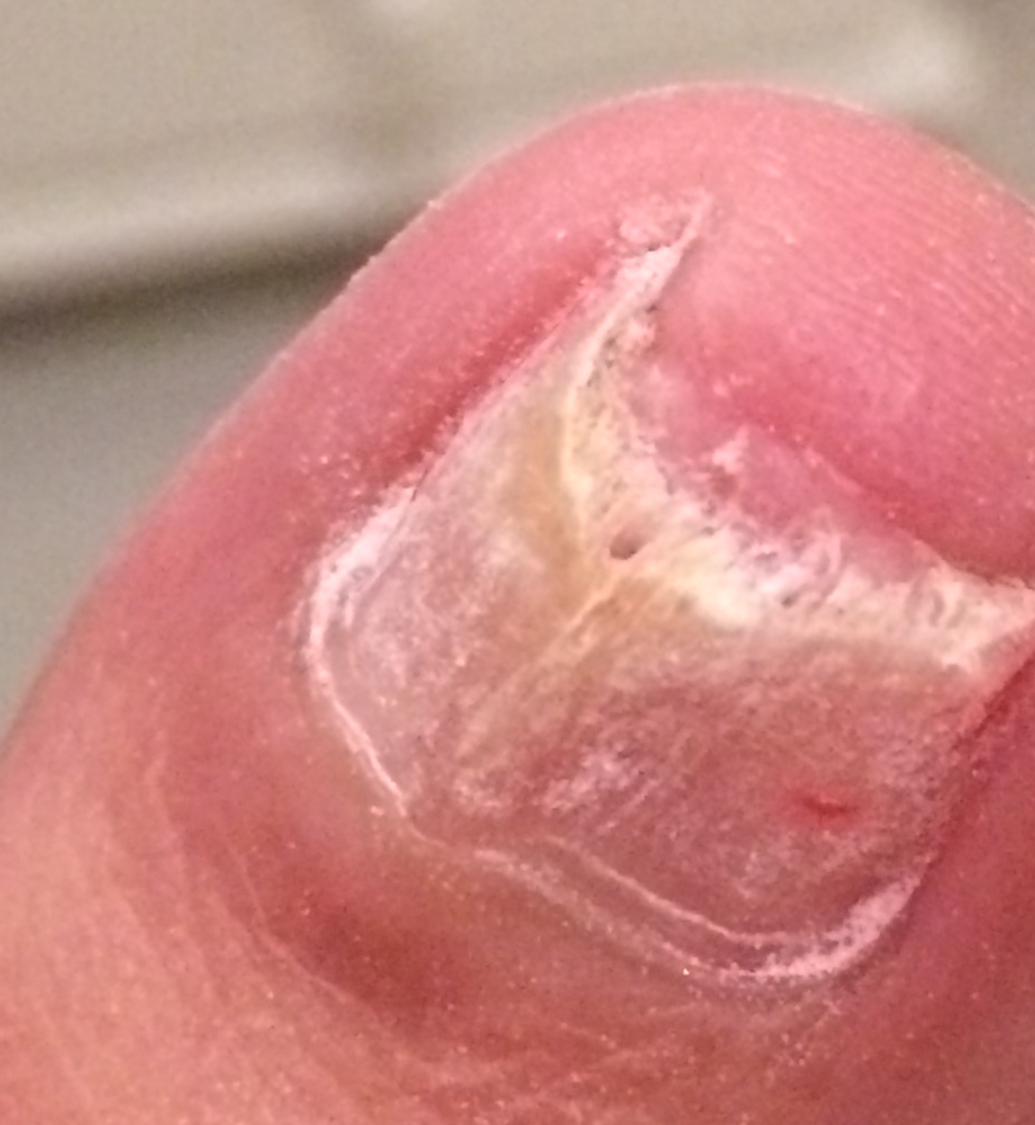 Une amie a moi a toujours eu un problème à l'ongle du gros orteil. Elle s'était pris un choc il y a plusieurs années, l'ongle était tombé mais n'avait jamais repoussé normalement.