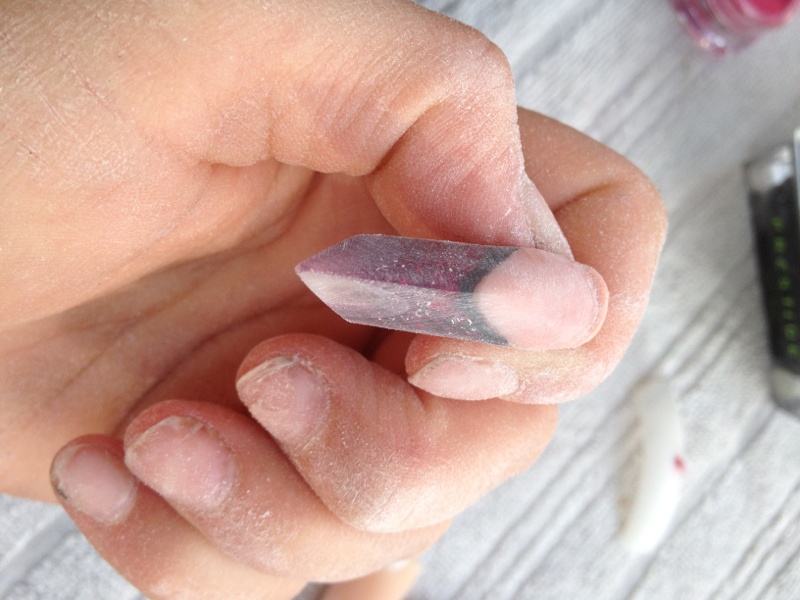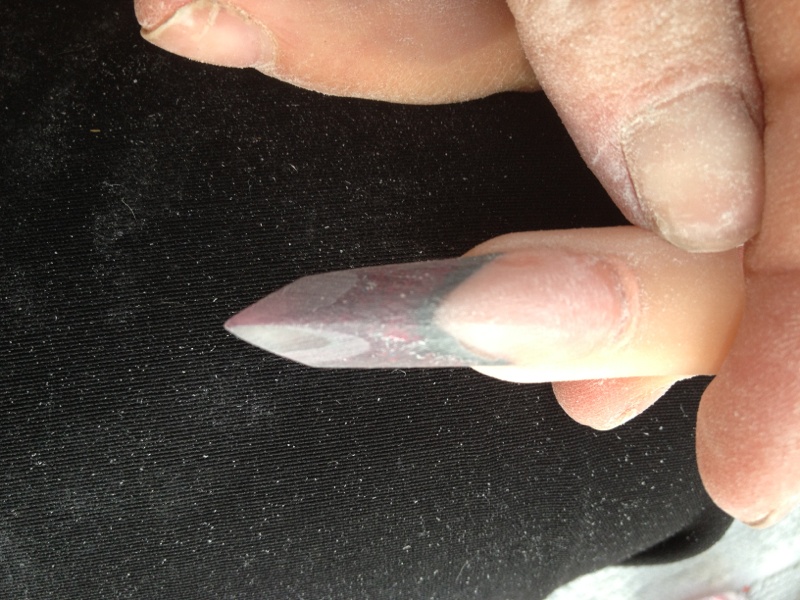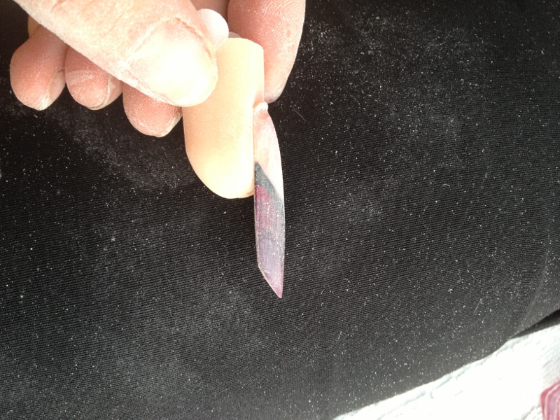 Bon j ai limé pour aplatir ce satané sommet .. Mzis a chaque fois que je reforme mon arrête sa s arrondi !! Rrrrrrrrhh bon du coup ma french a commencer a sauté a force de limé enfin j au tout raté quoi mdr !! Bon je vais recommencer en veillant bien a ce sur mon chablon pique pas du nez !! Et on verra !