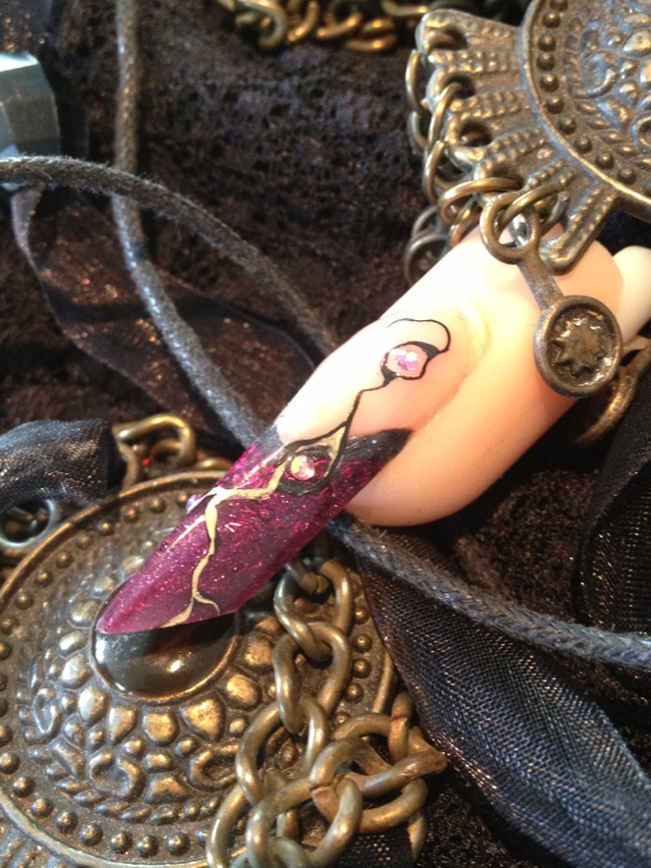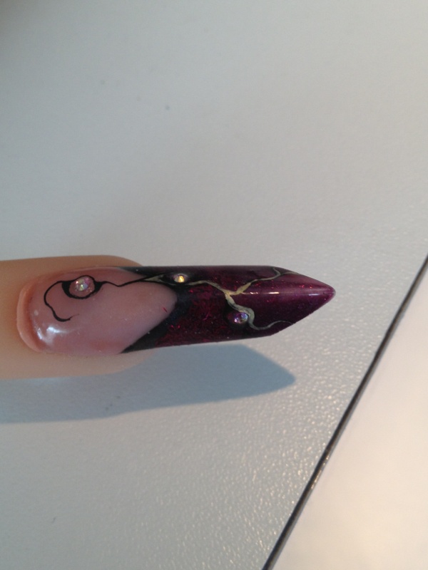 Merci alors pour la couleur c est du gel de chez peggy sage le lilas shake et j ai rajouter des filaments pourpre avec résine par dessus ..