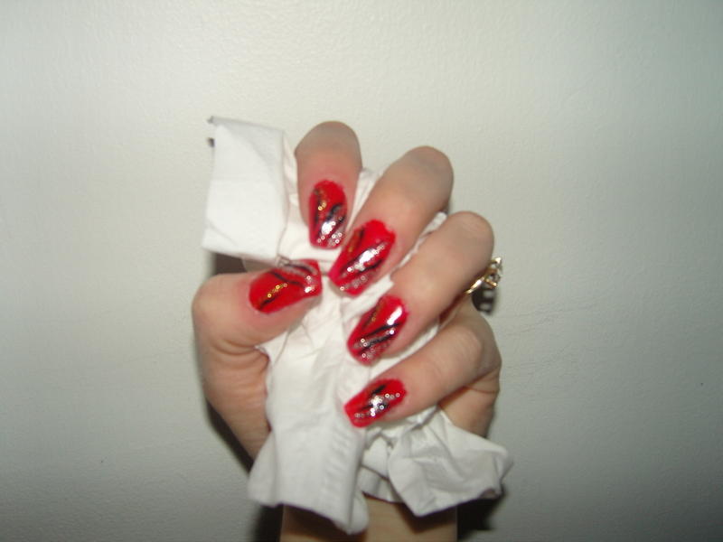 la derniere photo c'est une pose chablon plus deco vernis liner et paillettes(la deco rouge pour le mariage dont je vous avez parlez)