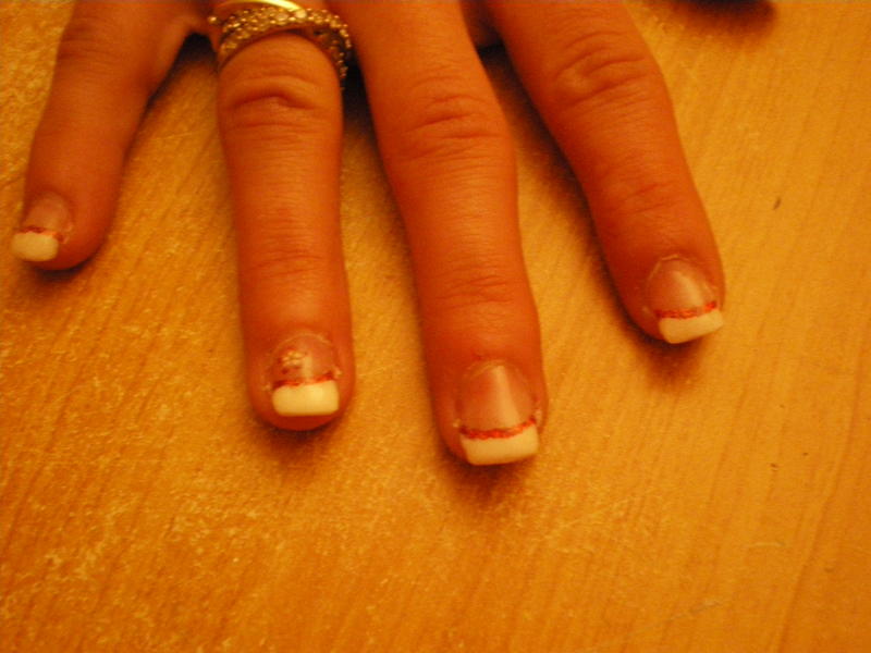Alors attention à la french qui n'est pas de la même taille partout et surtout sur la dernière photo, attention à la forme des ongles, il faut que tu limes après ta construction..^^