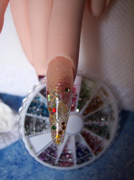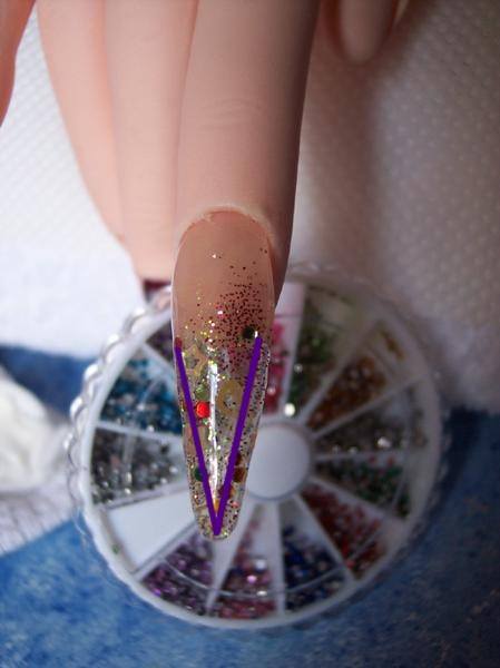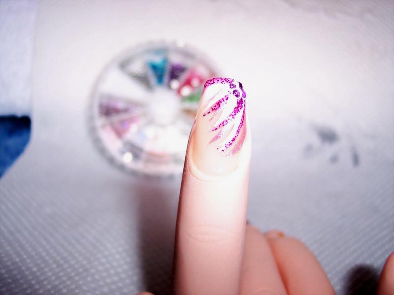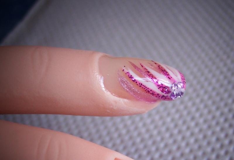 jolie déco et pour le stilet , comme les autres, limage des parallèlesDéco sur tips au liner rose irisé , blanc et pailletté rose fushia + strass violet .![]()