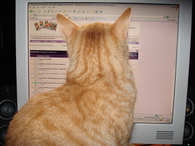 Re : Mon Chat adooore le forum, voyez plutôt ... ohhh trop mignion il veux peut etre se lancer aussi dans la pose d'ongle en gel...lol