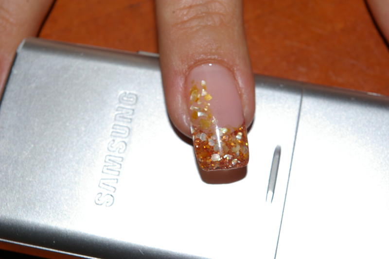 j'ai fait au chablon, rallongement au mask de l'onglerie, mélange paillette et gel puis nacres, gel easy 2 en construction et sealer en finition