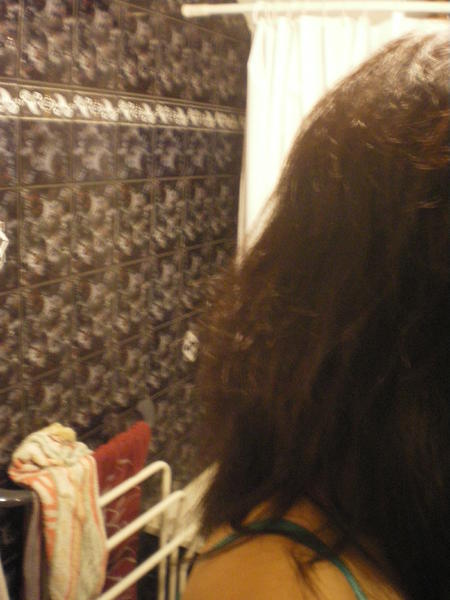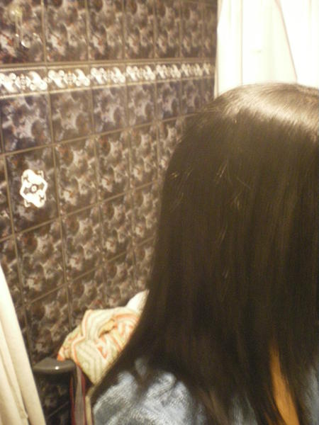 donc voila je vous met les photos de mes cheveux avant (lissé du matin :s ) et apres le jour meme et les jours suivants ! (Je me suis faite une couleur avant d ou le changement de couleur)...