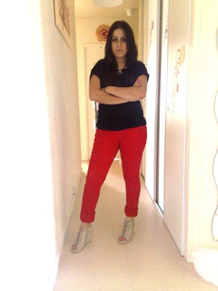 J'avais fait un post pour vous demander comment est ce que je peux porter mon slim rouge..Grâce aux conseils de celles qui ont bien voulu m'aider, j'ai fait des photos looooool