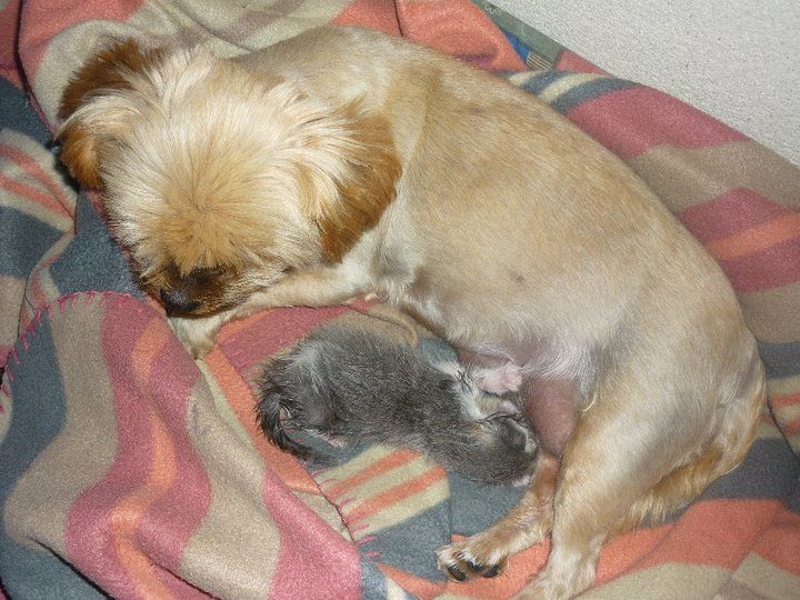 Il se trouve qu'on a retrouvé un chaton de à peine une semaine il y a 3 jours, je le nourris au biberrons avec du lait spécialisé pour chaton, mais le pire de tout c'est que c'est mon chien qui s'occupe de lui !!! Elle le nettoit, elle le lèche, quand il s'en va de la paniette elle le porte pour le ramené dedans ! c'est incroyable ! le petit chat pense que c'est ça mere alors elle tète mon chien ( c'est un yorkshire croisé chidssu ) je vous met quelque photo pour vous montrer cette expérience incroyable!