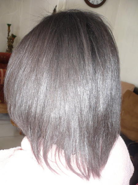 par endroit cassés par des défrisages qui restent sur ses longueurs, je lui ai Yukotisé la frange de devant sur 4 cm afin qu'elle est une idée de ce que ça peut donner..on attend le SHPG qui mousse maintenant