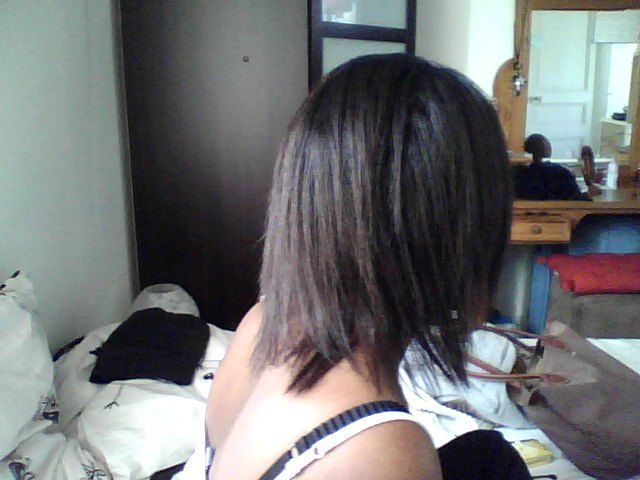 Pour ce qui est du coupage, à mon avis, tu devrais un peu couper les pointes et égaliser le tout en carré. Si le lissage a bien fonctionné au naturel tu devrais te retrouver avec des boucles plus structurées ce qui n'est pas mal avec un carré.