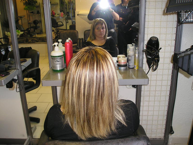 voici une photo de ma stagiaire faisant un ratrapage de mêches en racine à une qui m'à servie de modèle pour un nouveau produit ( voir le post 2 nouveaux lissages ) ;)
