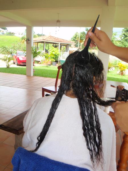 -photo 8 cheveux après application du masque et sèchage naturel;