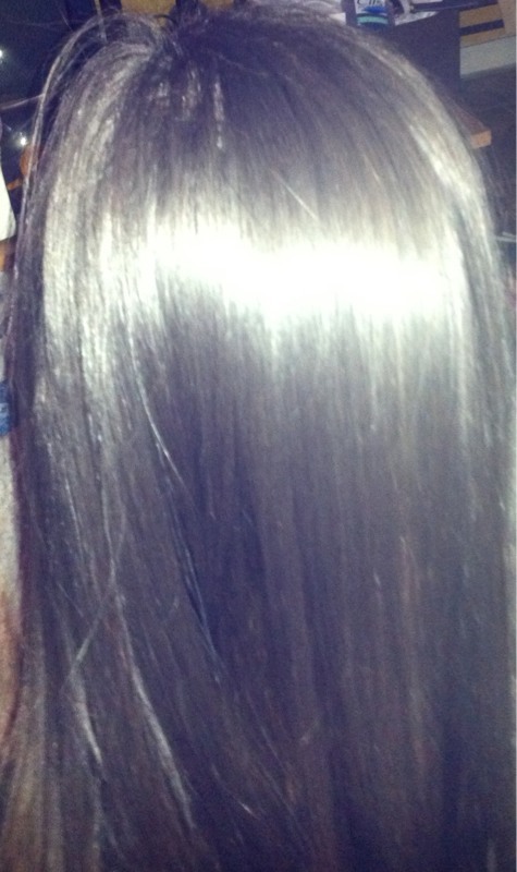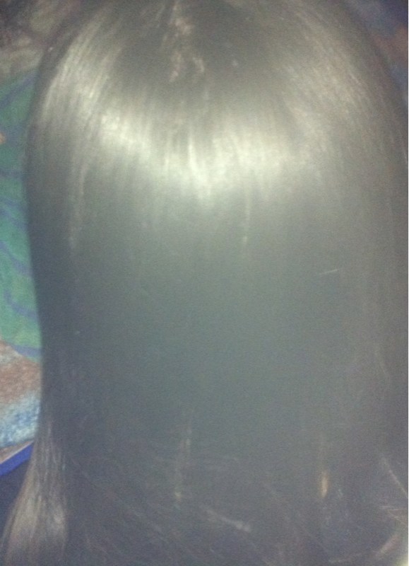 Donc aujourd'hui je me suis décidée à faire mon lb HGS avec formol. À la base j'ai les cheveux très bouclés aux racines (on le voit sur les photos et encore il restait encore un peu de lb) et très lisses sur les longueurs (lissage japonais).